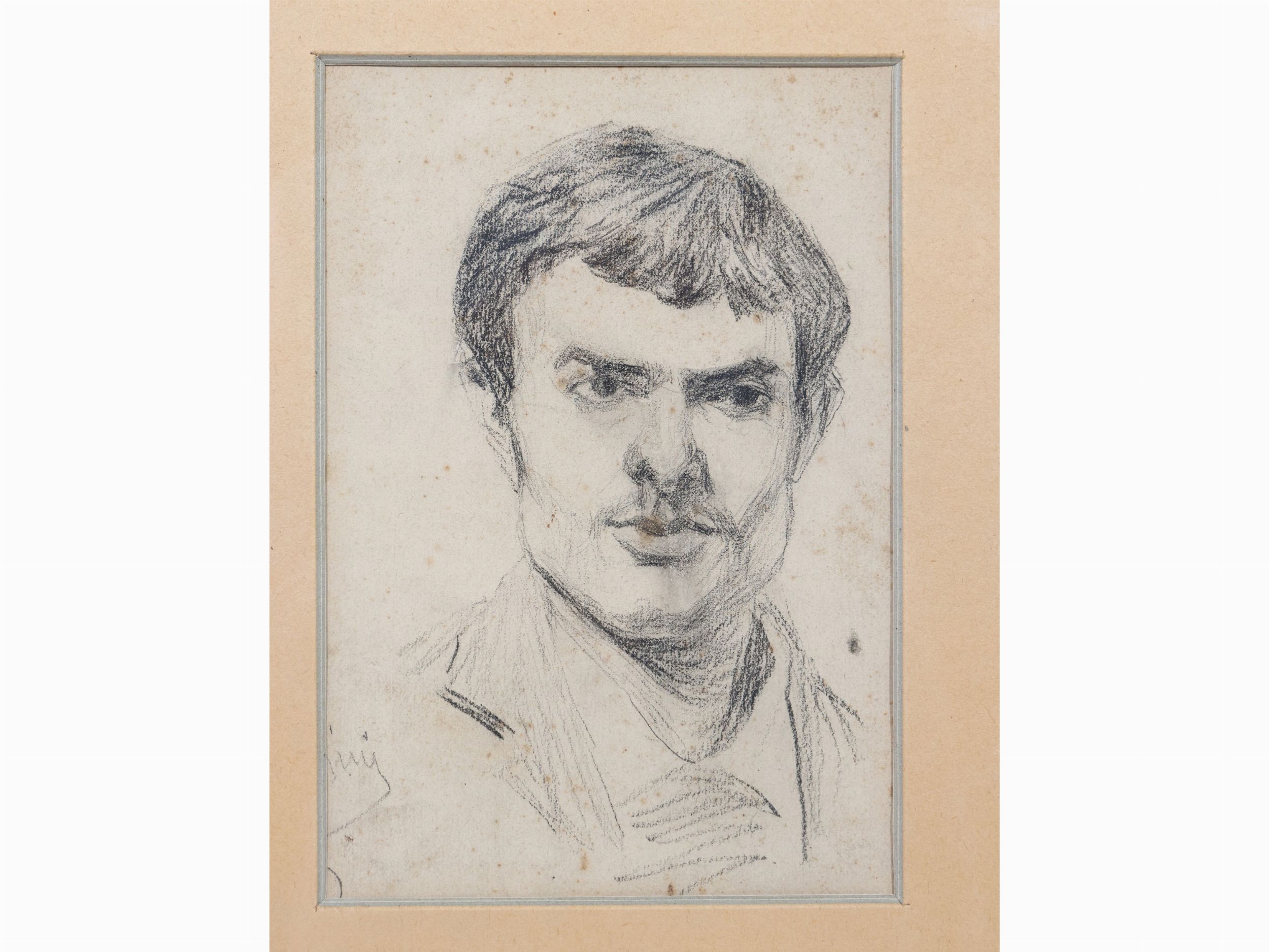 due disegni a matita su carta, firmati, in cornice, alcuni difetti