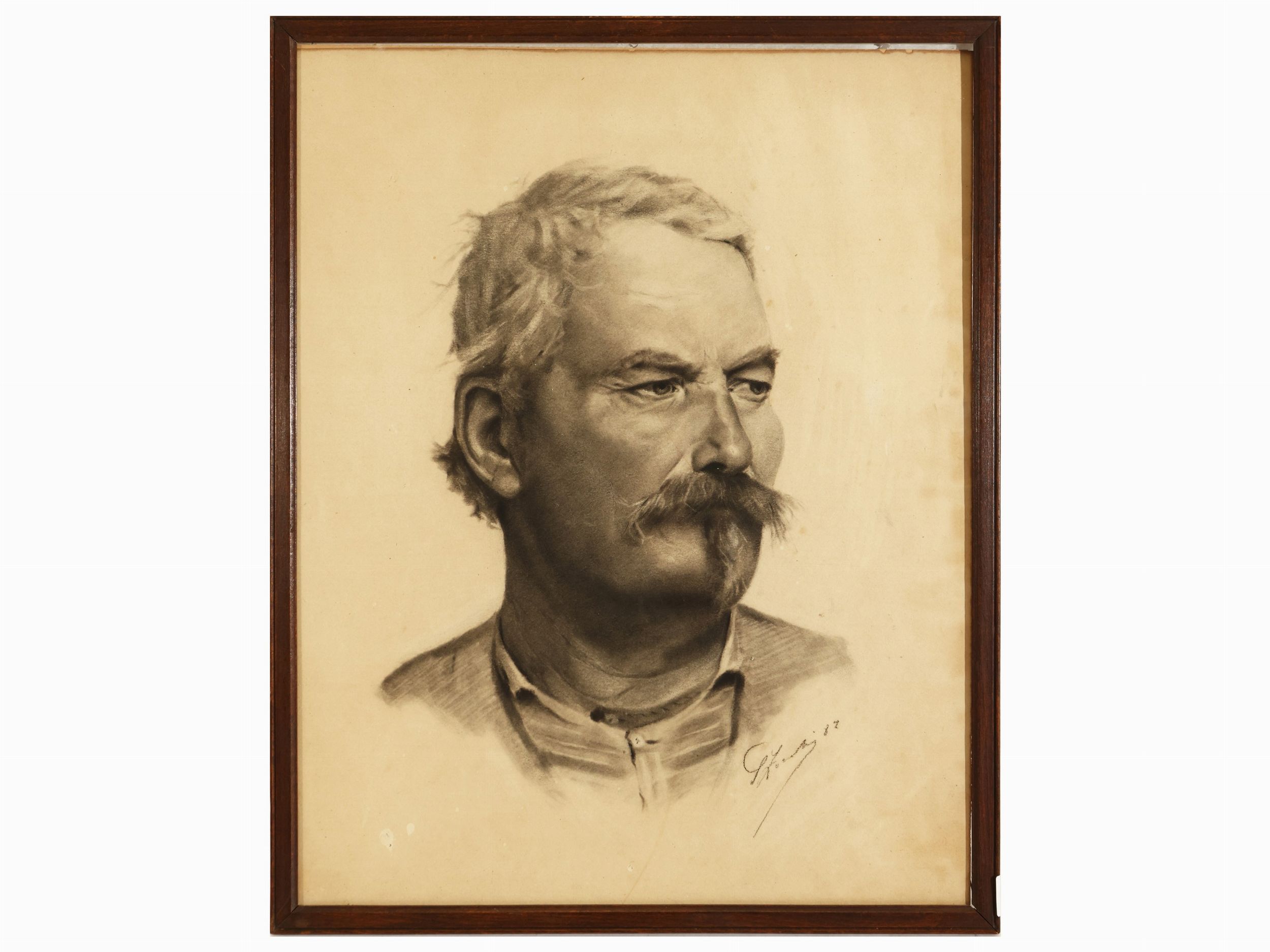 (XIX/XX secolo) due disegni a carboncino e matita su carta, firmati e datati, in cornice, alcuni difetti