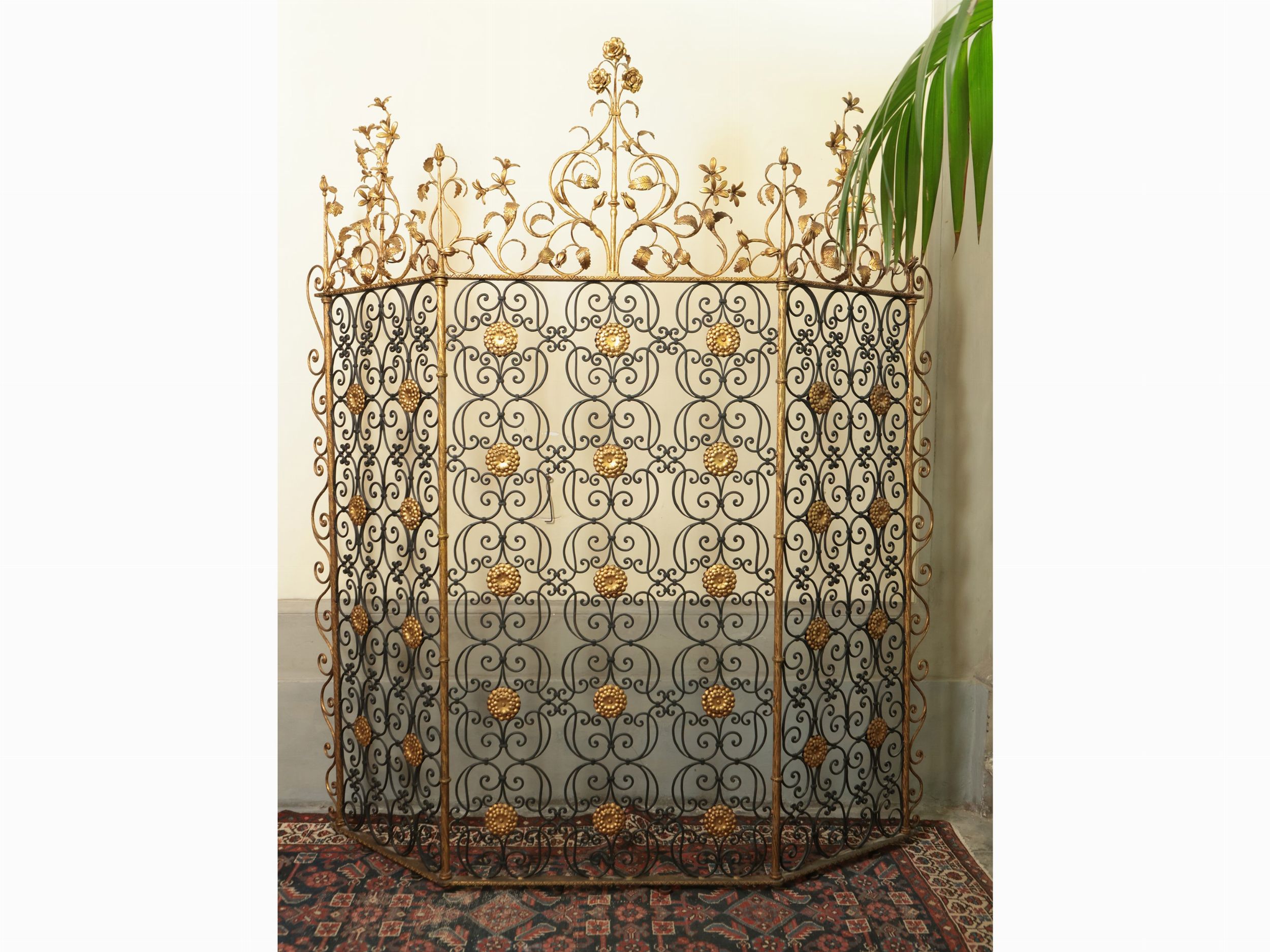 Separé o parafuoco in ferro battuto e lumeggiato in oro
