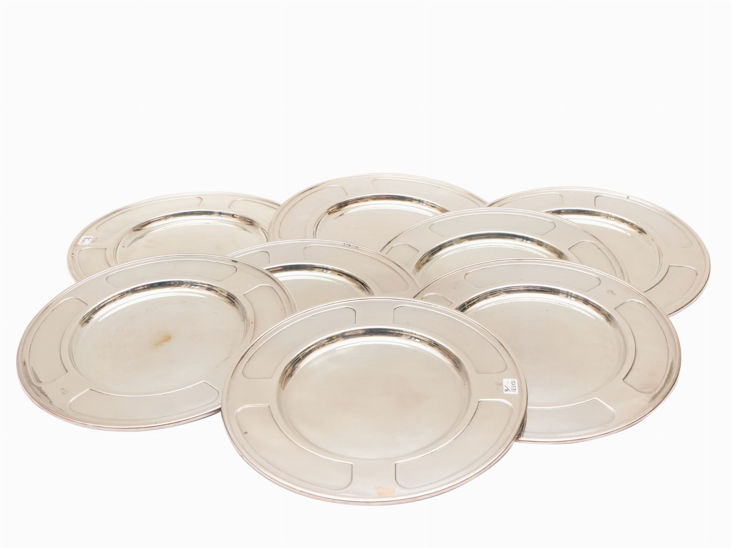 Serie di otto sottopiati in metallo argentato, Brandimarte