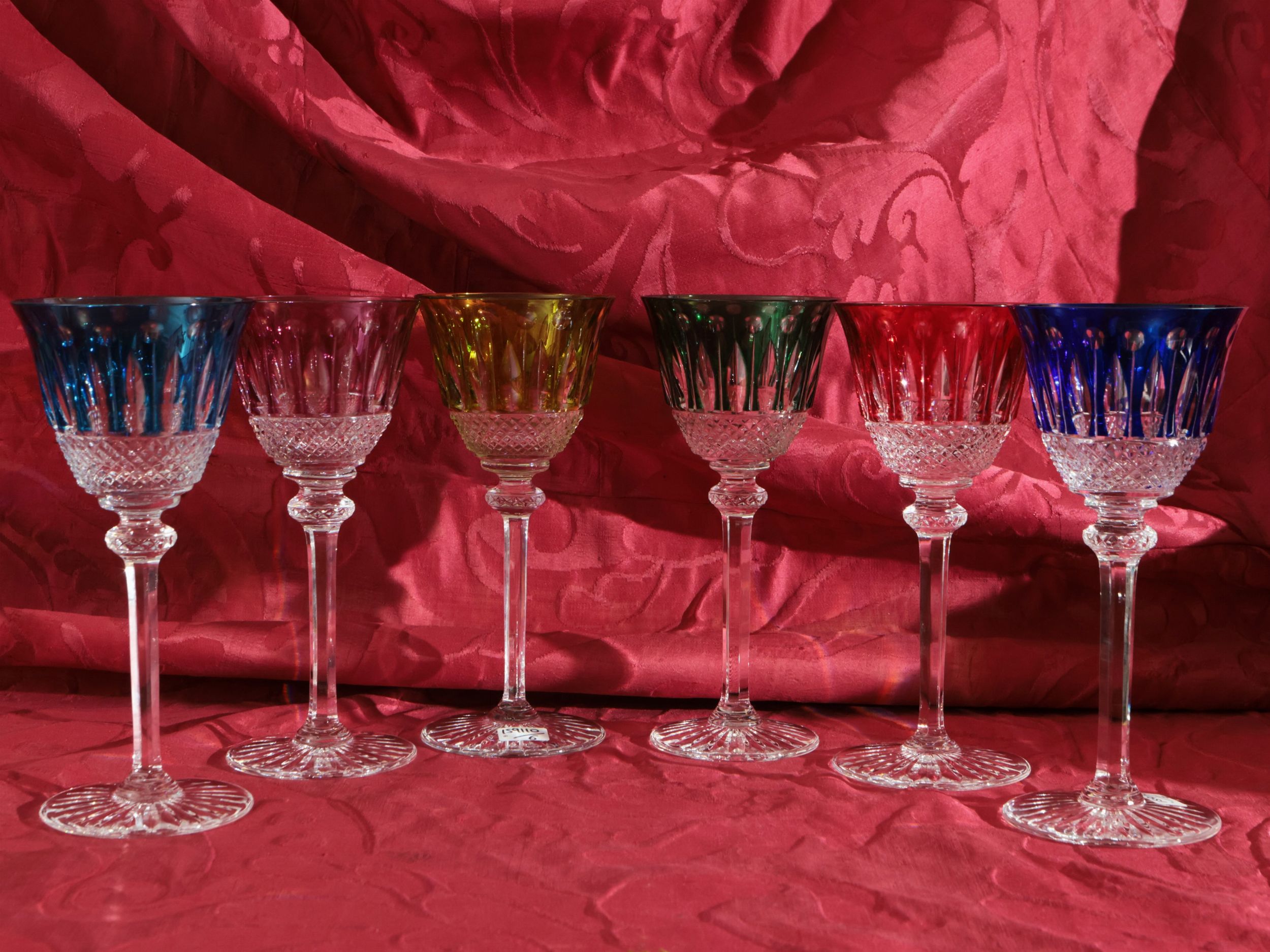 Serie di sei calici arlecchino in cristallo doppio, Saint Louis