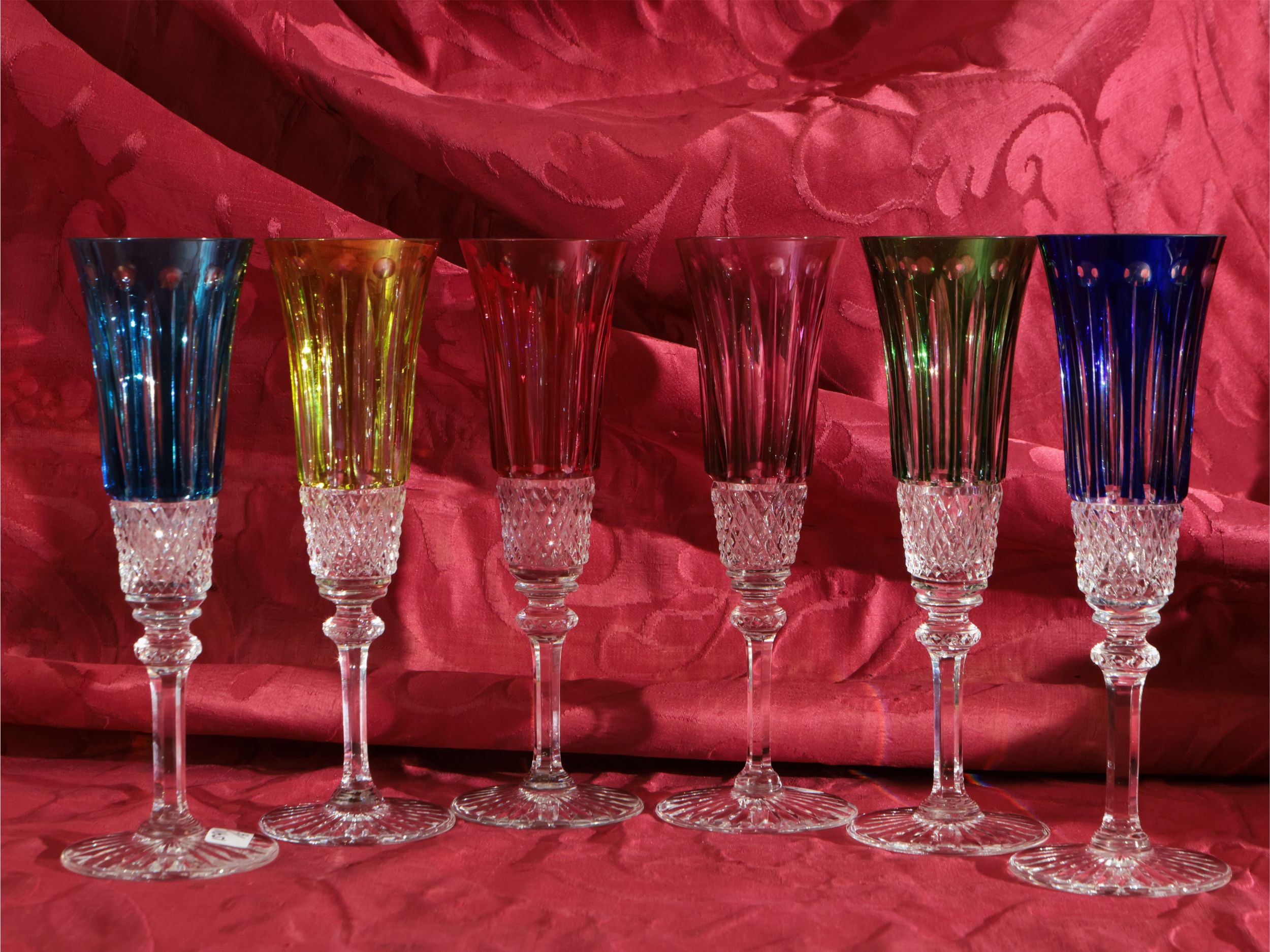 Serie di sei flute arlecchino in cristallo doppio, Saint Louis
