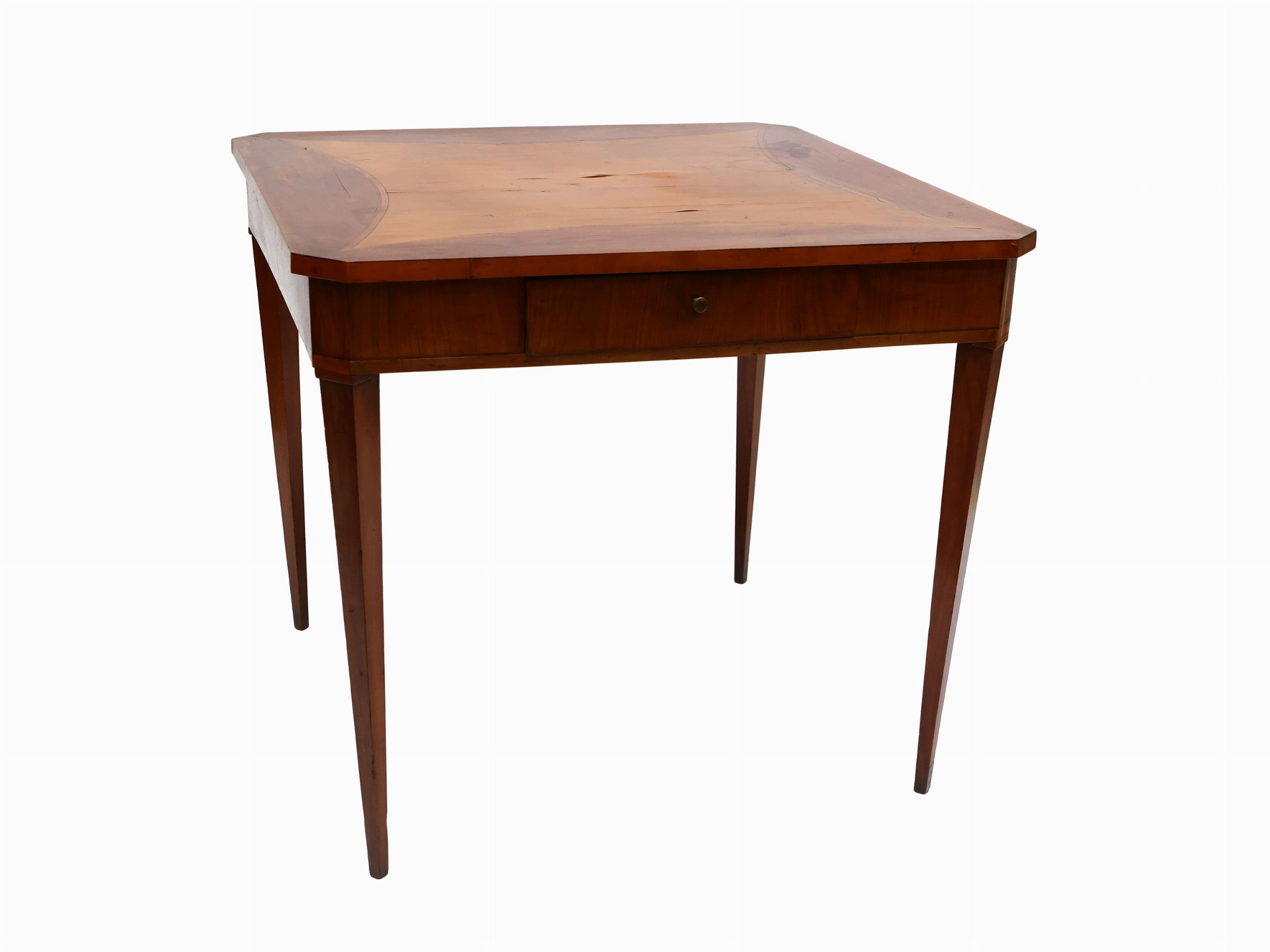 fine del XVIII secolo piano intarsiato con filettature, gambe a faretra