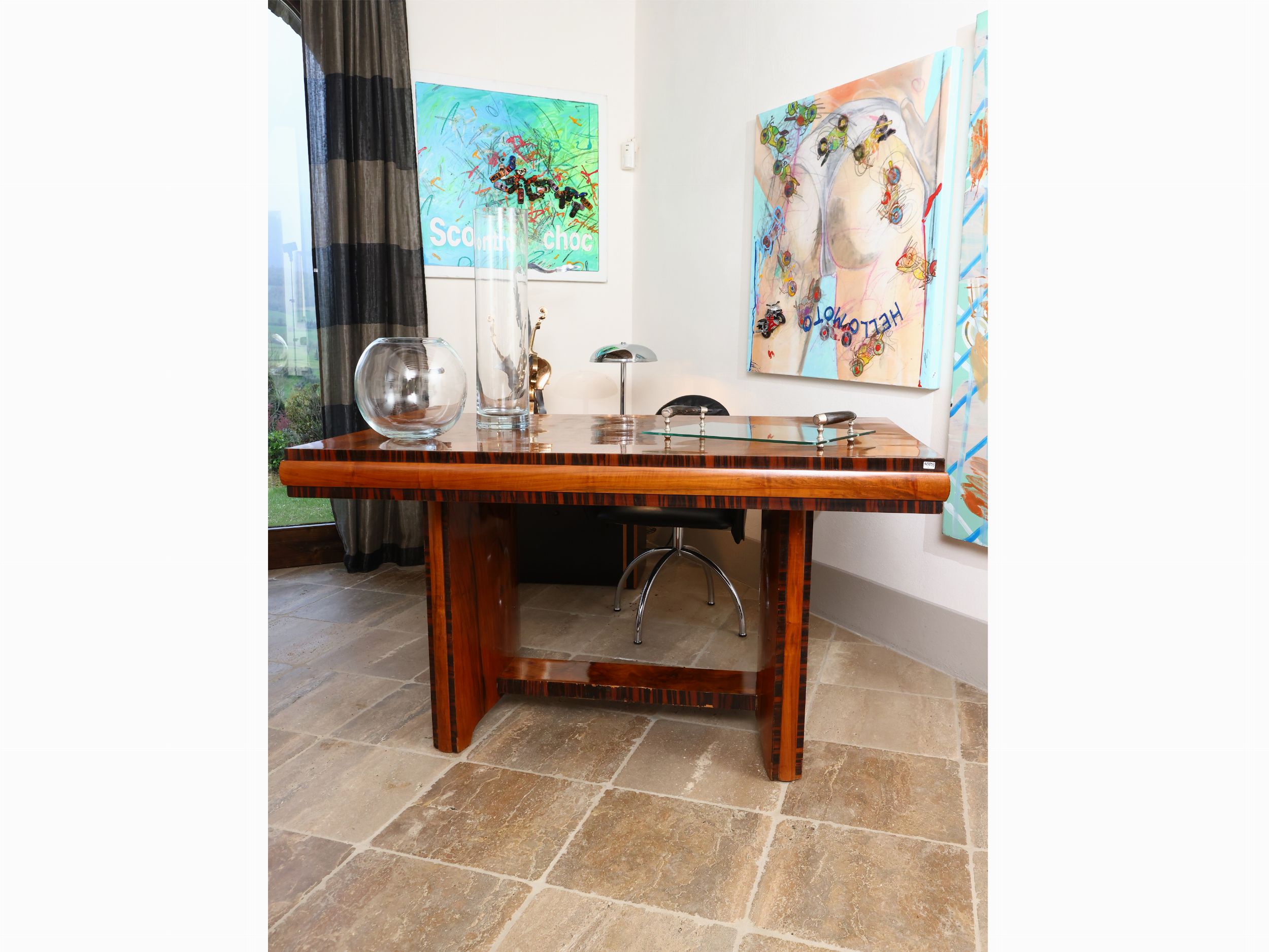 Tavolo impiallacciato in noce, radica di noce e palissandro, Art Decò