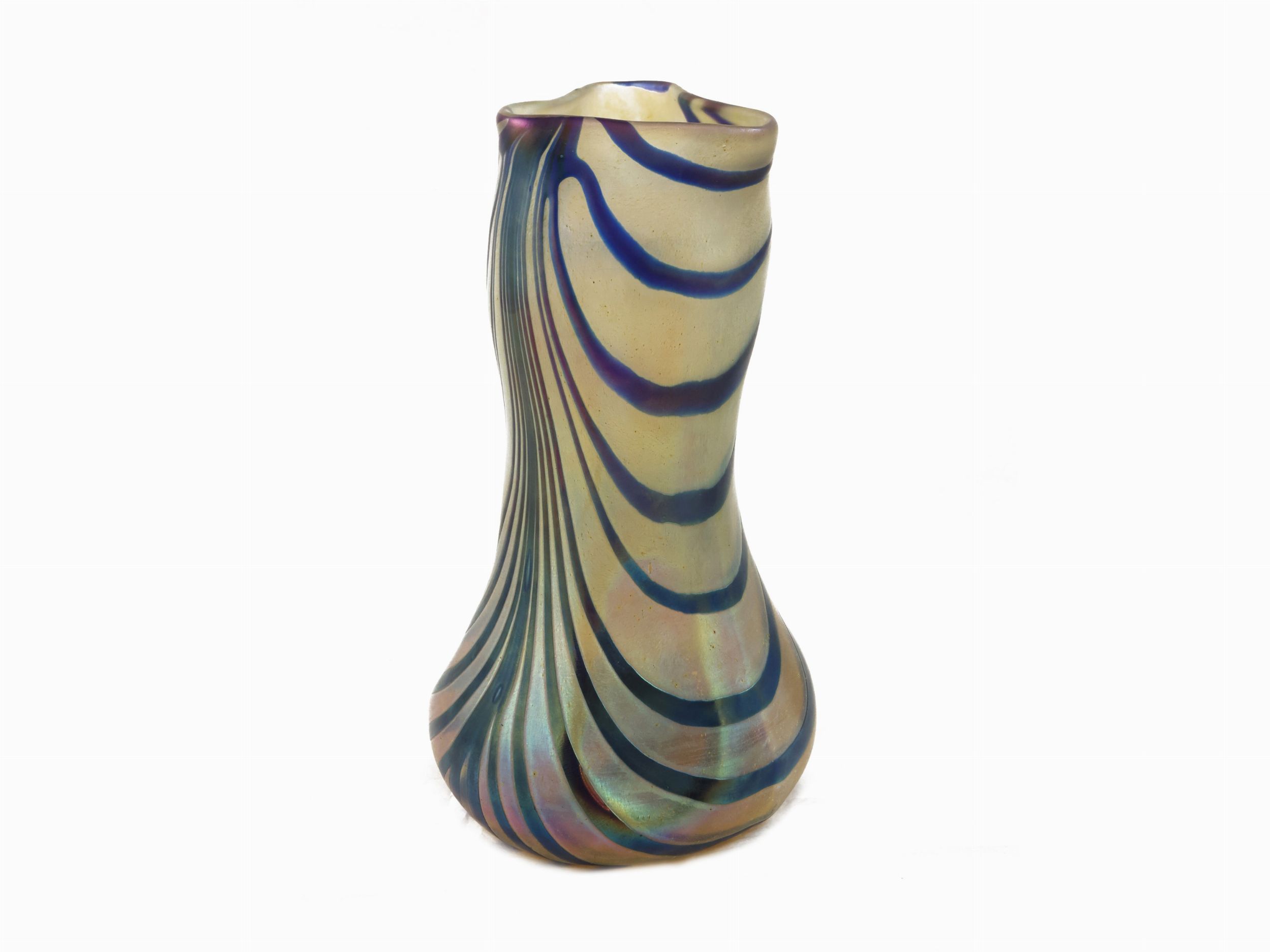 Boemia, 1900 circa bocca trilobata, con motivo di righe sinuose blu