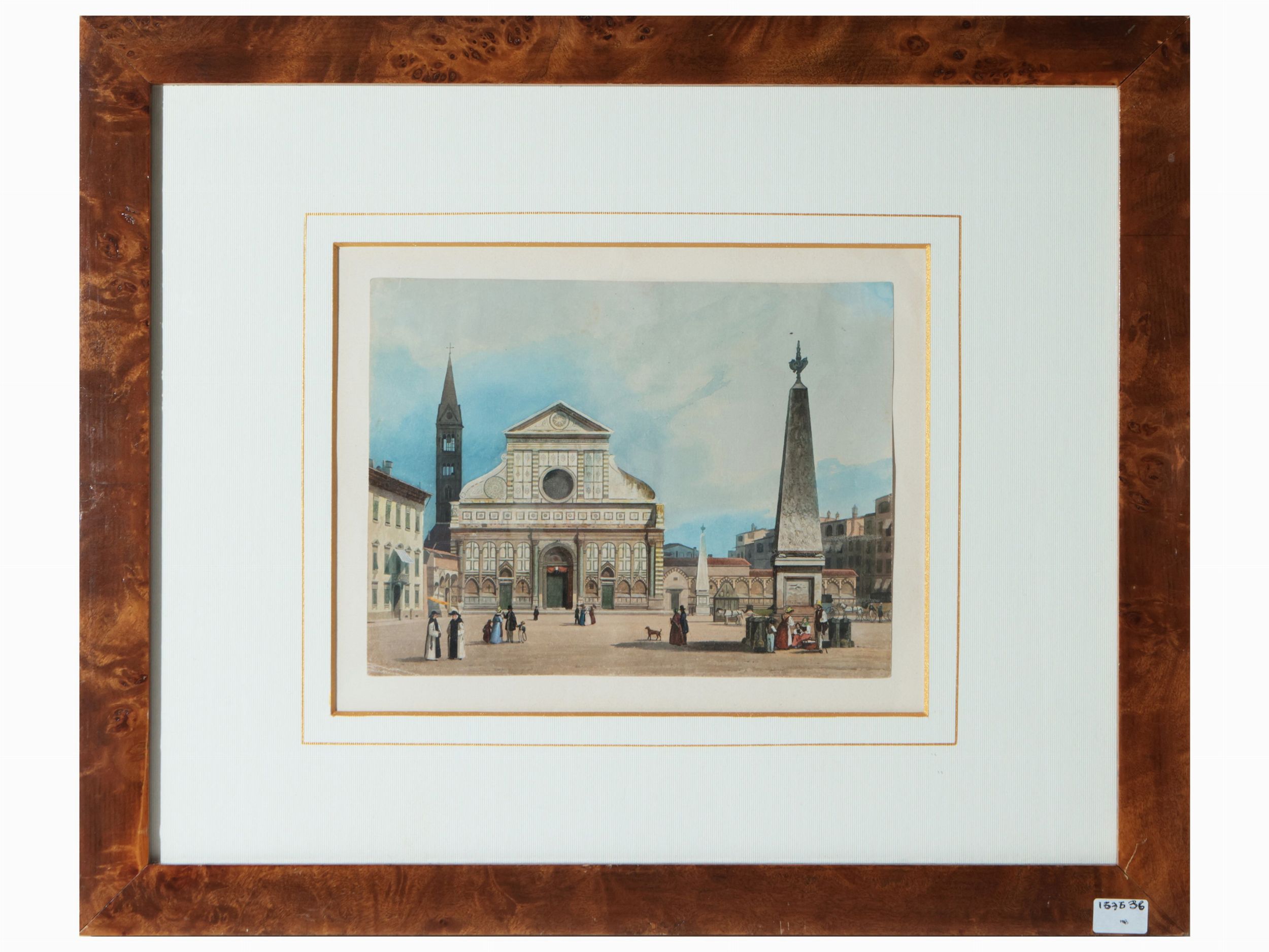 XIX secolo litografia acquerellata su carta applicata a cartoncino, in cornice