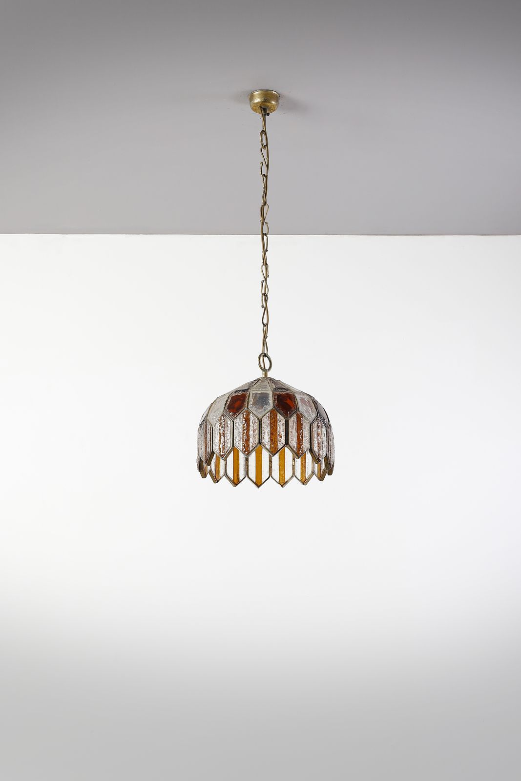 Seconda metà del XX secolo.Dimensioni: plafoniere 45 x 45 x 12 cm. lampada a sospensione 90 x 40 cm