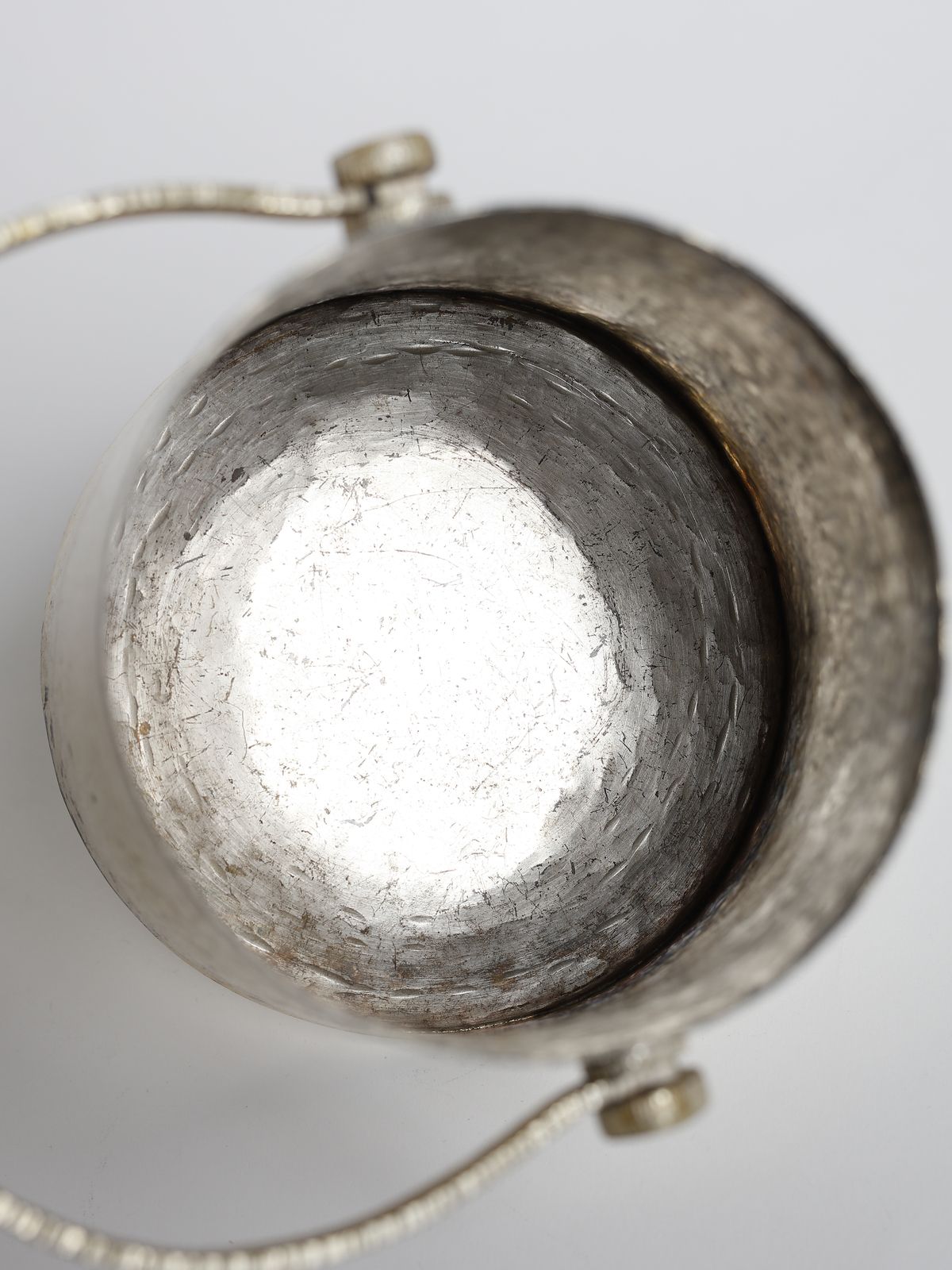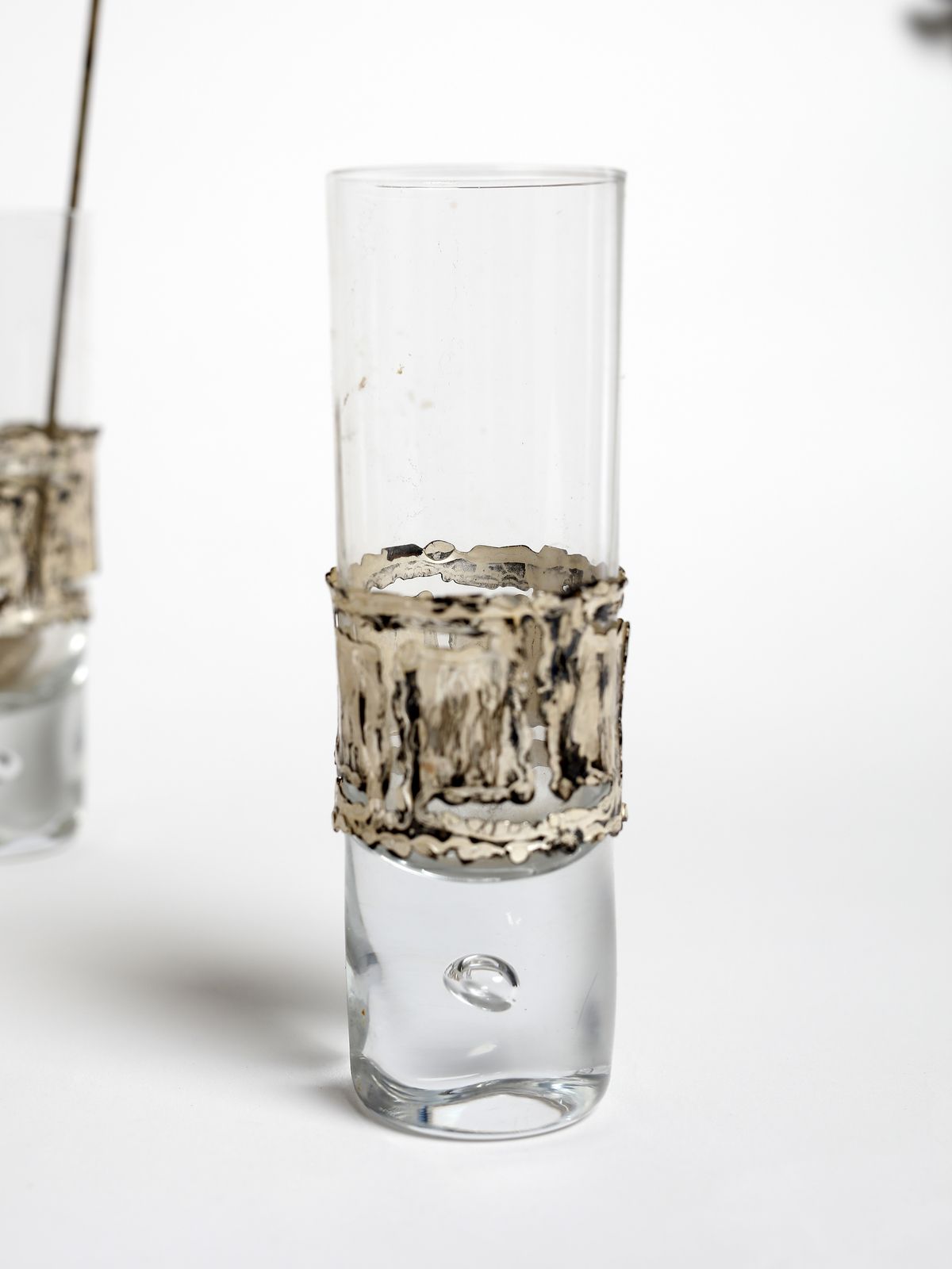 Anni Settanta.Firma incussa.Pezzo unico realizzato a mano.Peso (esclusi i bicchieri): 690 gr