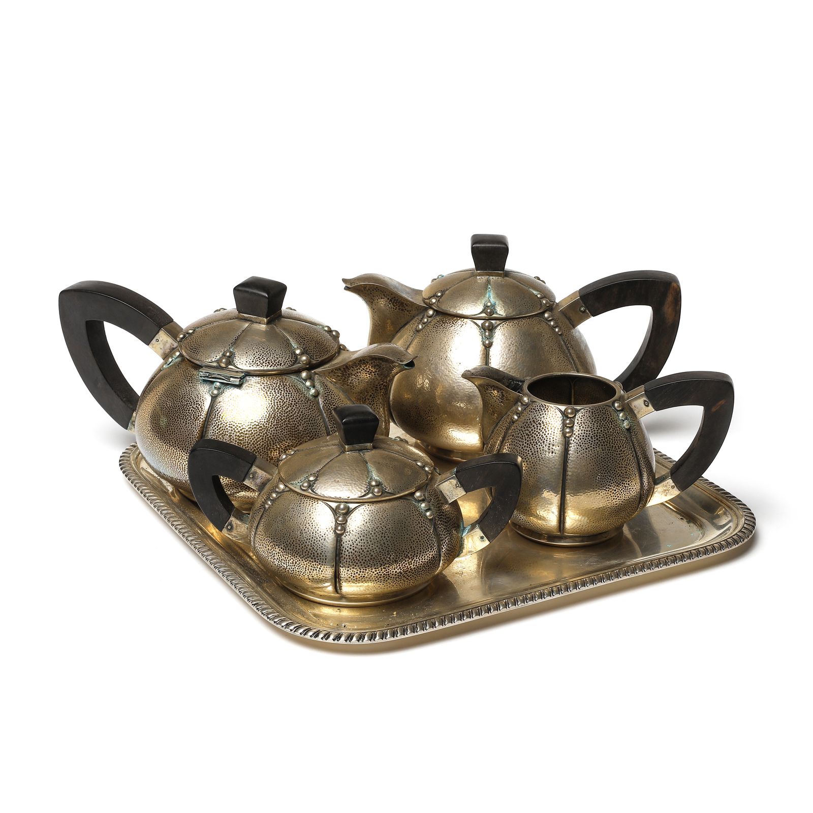 Servizio da te e caffè composto da vassoio, teiera, caffettiera, lattiera, zucch [..]
