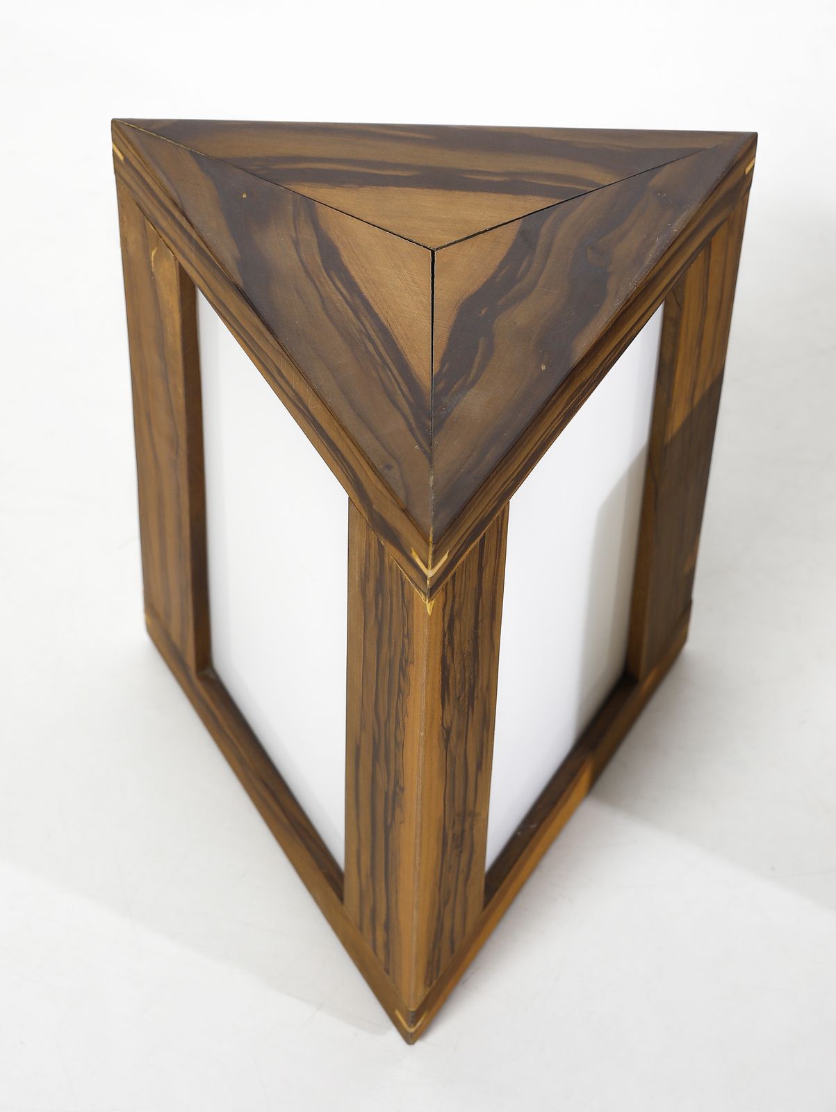 Anni Settanta.Dimensioni: vaso 30 x 12 x 12 cm. lampada triangolare 30 x 25 x 22 cm. lampade cubo 21 x 20 x 20 cm