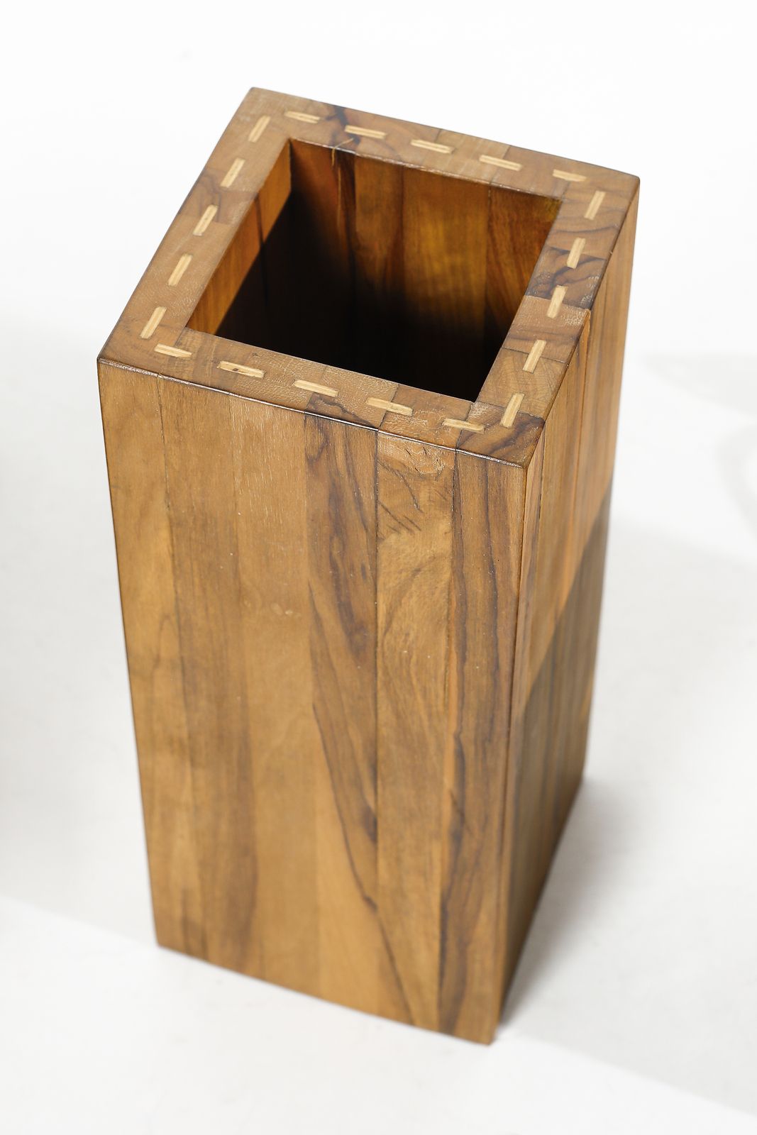 Vaso, lampada da tavolo triangolare e coppia di lampade da tavolo cubiche