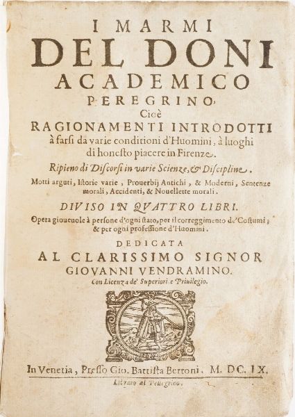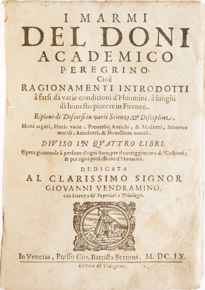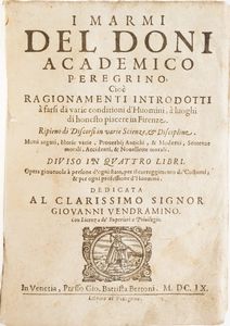 Doni Antonfrancesco I marmi...In Venezia, presso Bertoni, 1609.