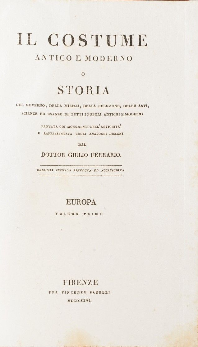 Ferrario Giulio Il costume antico e moderno e storia del governo, della milizia, [..]
