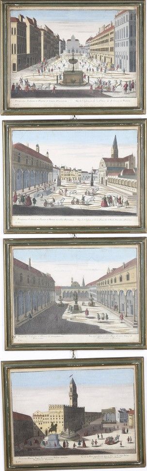 Firenze-vedute ottiche. Quattro vedute ottiche in bella coloritura. Francia, secolo [..]