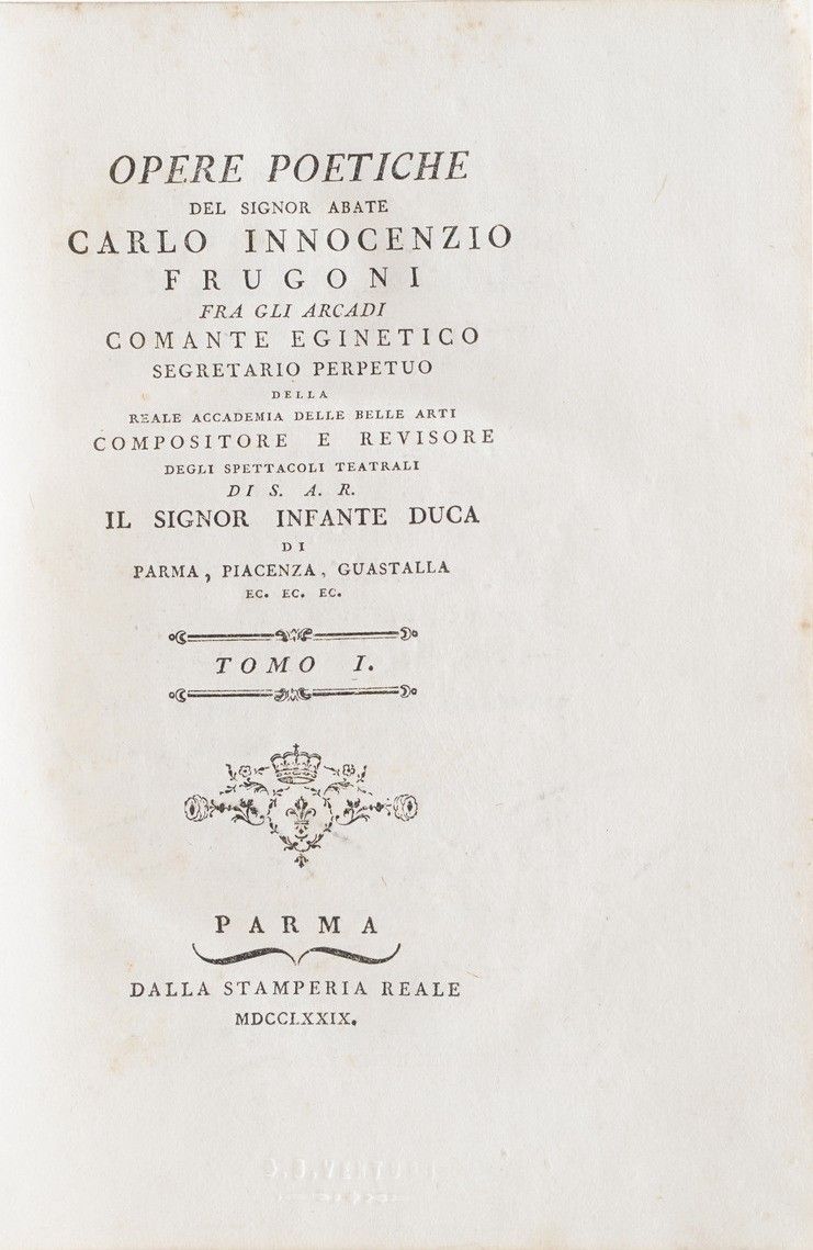 Frugoni Carlo Innocenzio Opere poetiche del Signor Abate... Parma, dalla stamperia [..]