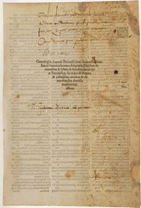 In folio. Rilegatura coeva in pergamena rigida, che presenta restauri e abrasioni. Il frontespizio un poco più [..]