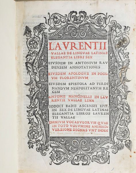 Lorenzo Valla Lorenzo Valla De linguae latinae elegantia libri sex. Venezia, Agostino [..]