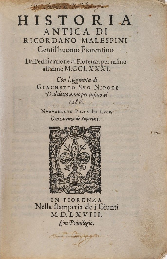 Malaspini Ricordano Historia antica... dall'edificazione di Fiorenza fino all'anno [..]