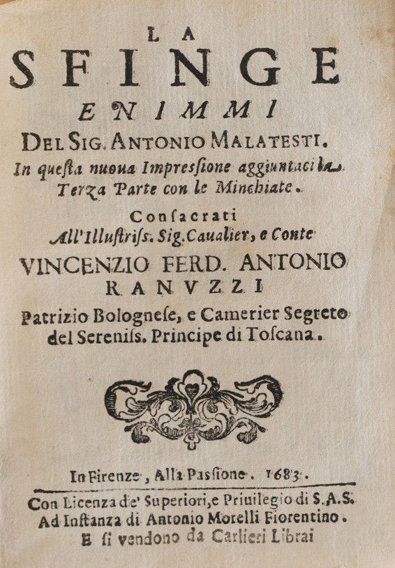 Malatesti Antonio La sfinge enigmi... in questa nuova impressione giuntaci la terza [..]