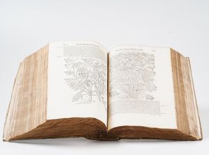 In folio. Rilegatura coeva in pergamena rigida, che presenta restauri e abrasioni. Il frontespizio un poco più corto potrebbe provenire da un altro esemplare o essere stato rifilato. Bellissima edizione con le figure in legno di grandi dimensioni, purtroppo mancante delle ultime carte della distillazione. Restauri al frontespizio e ad alcune carte della distillazione che risultano rimarginate.