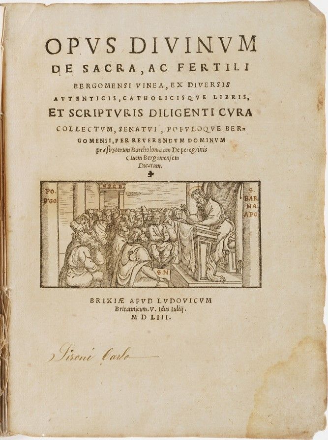 Peregrinis (De) Bartholomaeus Opus divinum de sacra, ac fertili Bergomensi Vinea...Brixiae, [..]