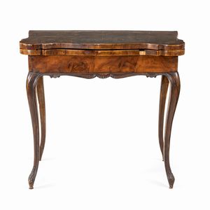 73x44x44 cm. Francia, XIX-XX Sec. piano intarsiato con motivi floreali e vegetali, gambe di linea sagomata riunite [..]