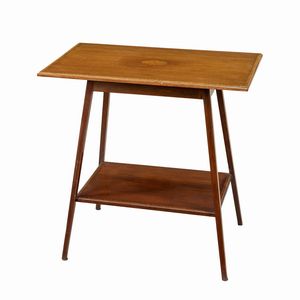 70x69x40 cm. Inghilterra, XX Sec. piano rettangolare intarsiato e filettato con ripiano sottostante
