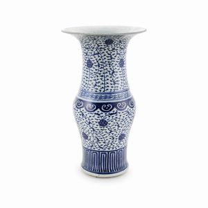h. 40 cm. Cina, XIX-XX Sec. forma a balaustro decorato in bianco e blu
