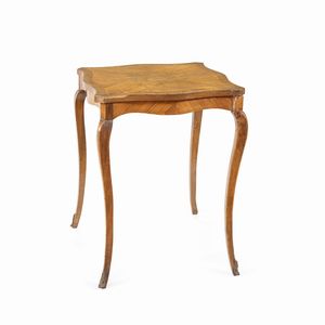73x80x80 Italia, primi anni del XX Sec. piano polilobato parzialmente intarsiato in legni vari, poggiante su [..]