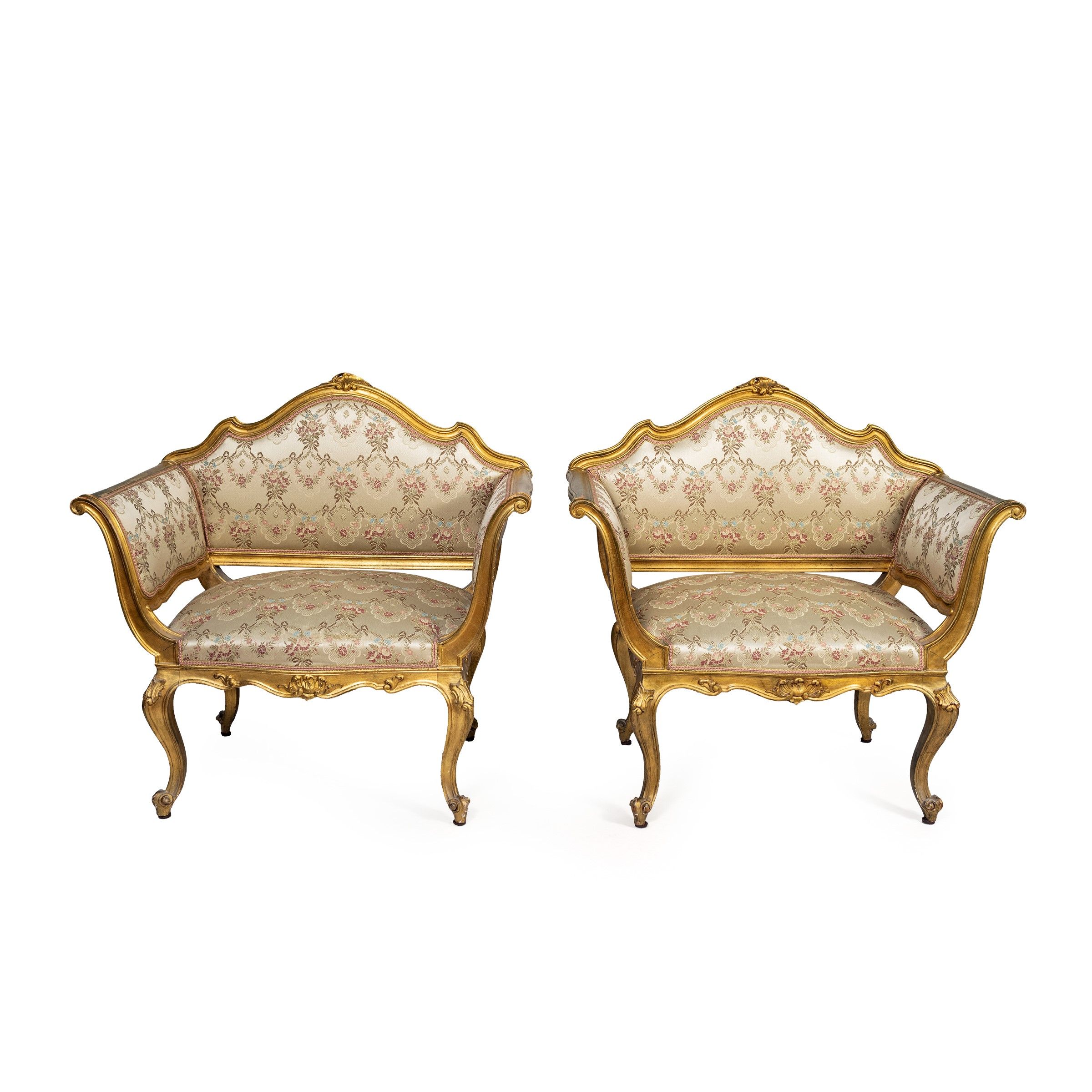 Salotto in legno dorato e tessuto imbottito