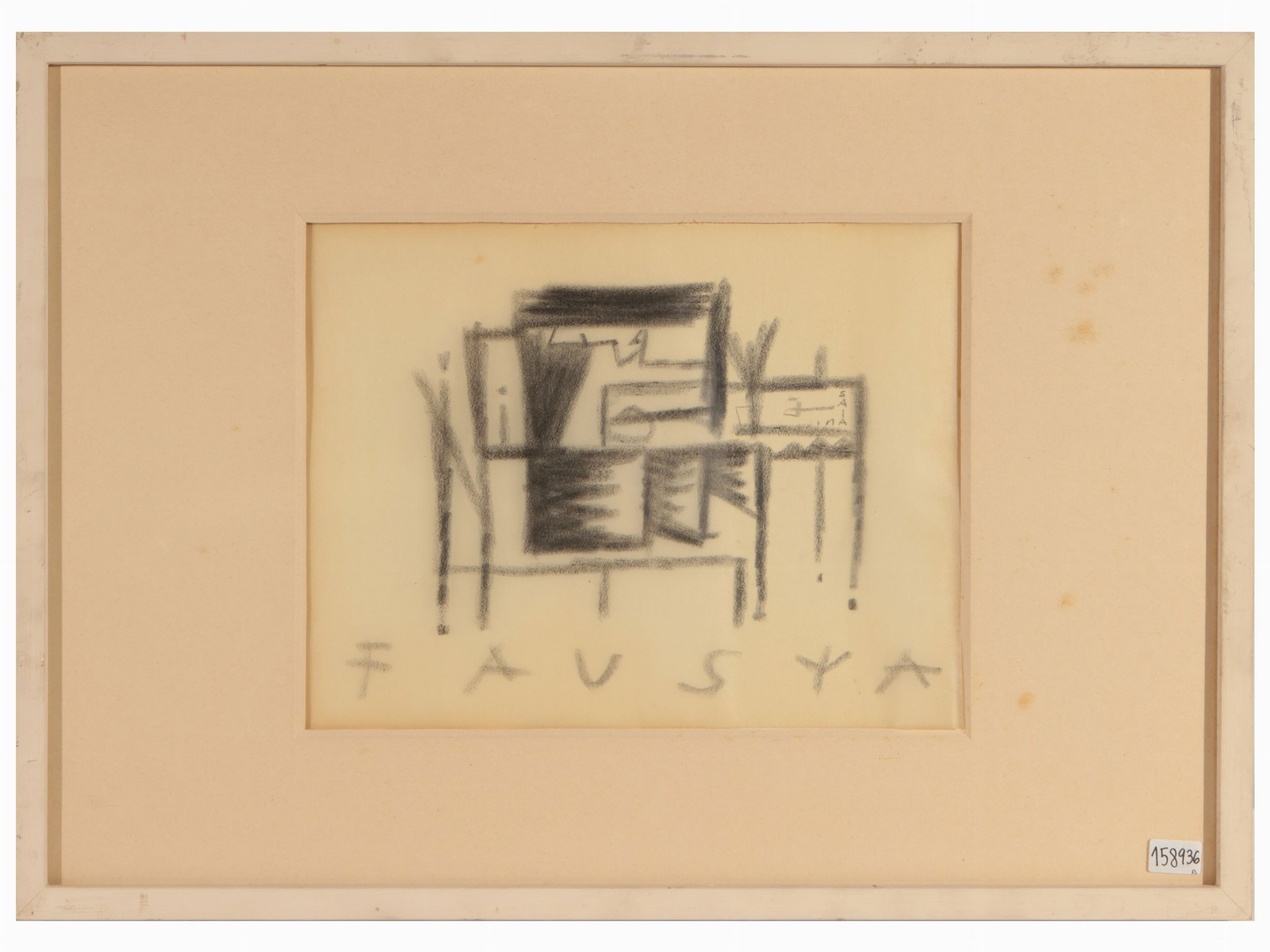 carboncino su carta, firmato, in cornice, alcune fioriture ed ingiallimento della carta