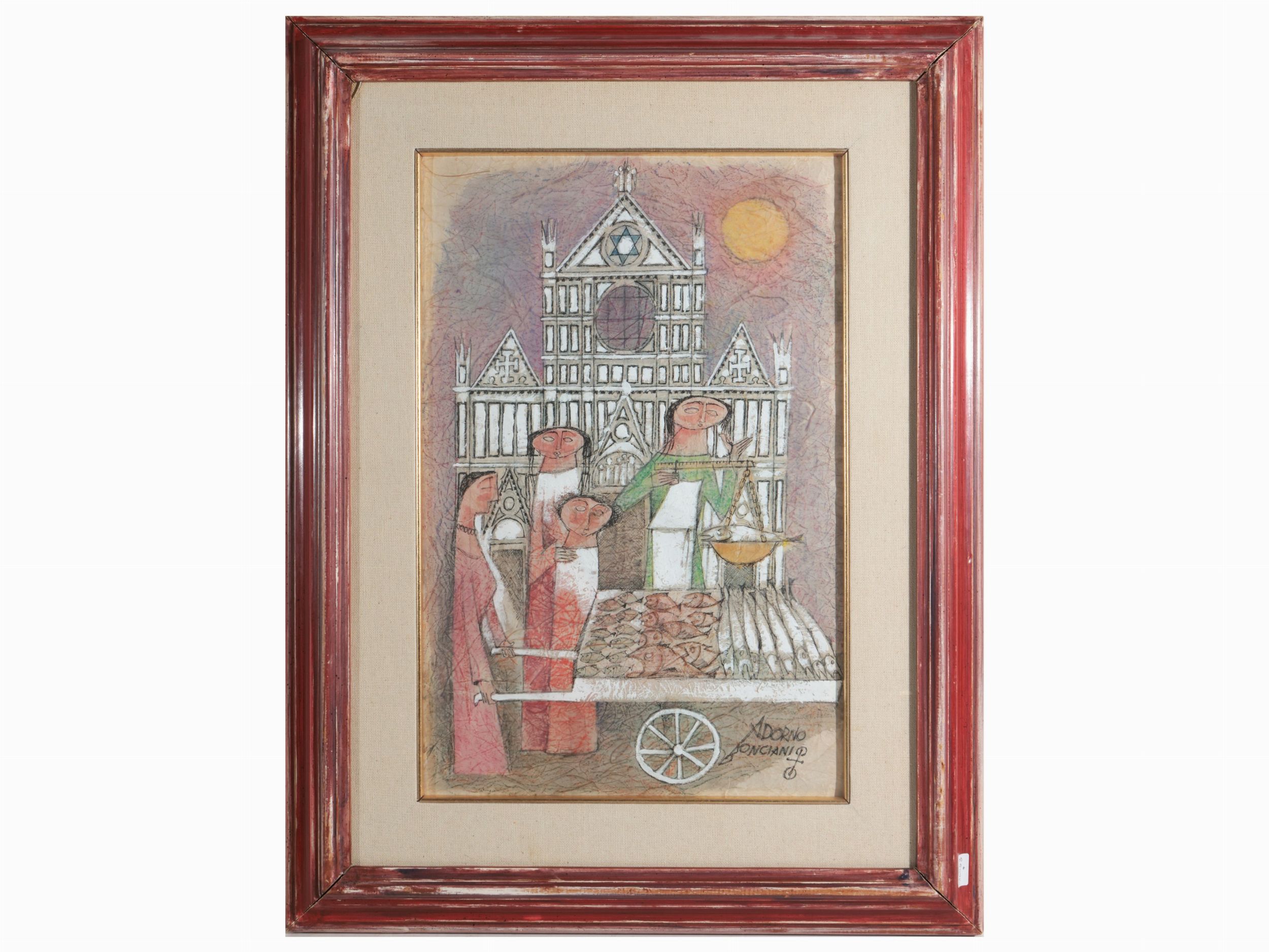 tecnica mista su carta, firmato, in cornice