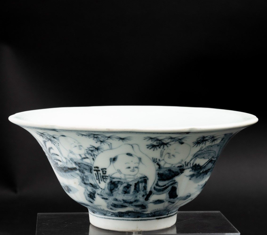 Ciotola in porcellana bianca e blu con figure di fanciulli, Cina, Dinastia Qing, [..]