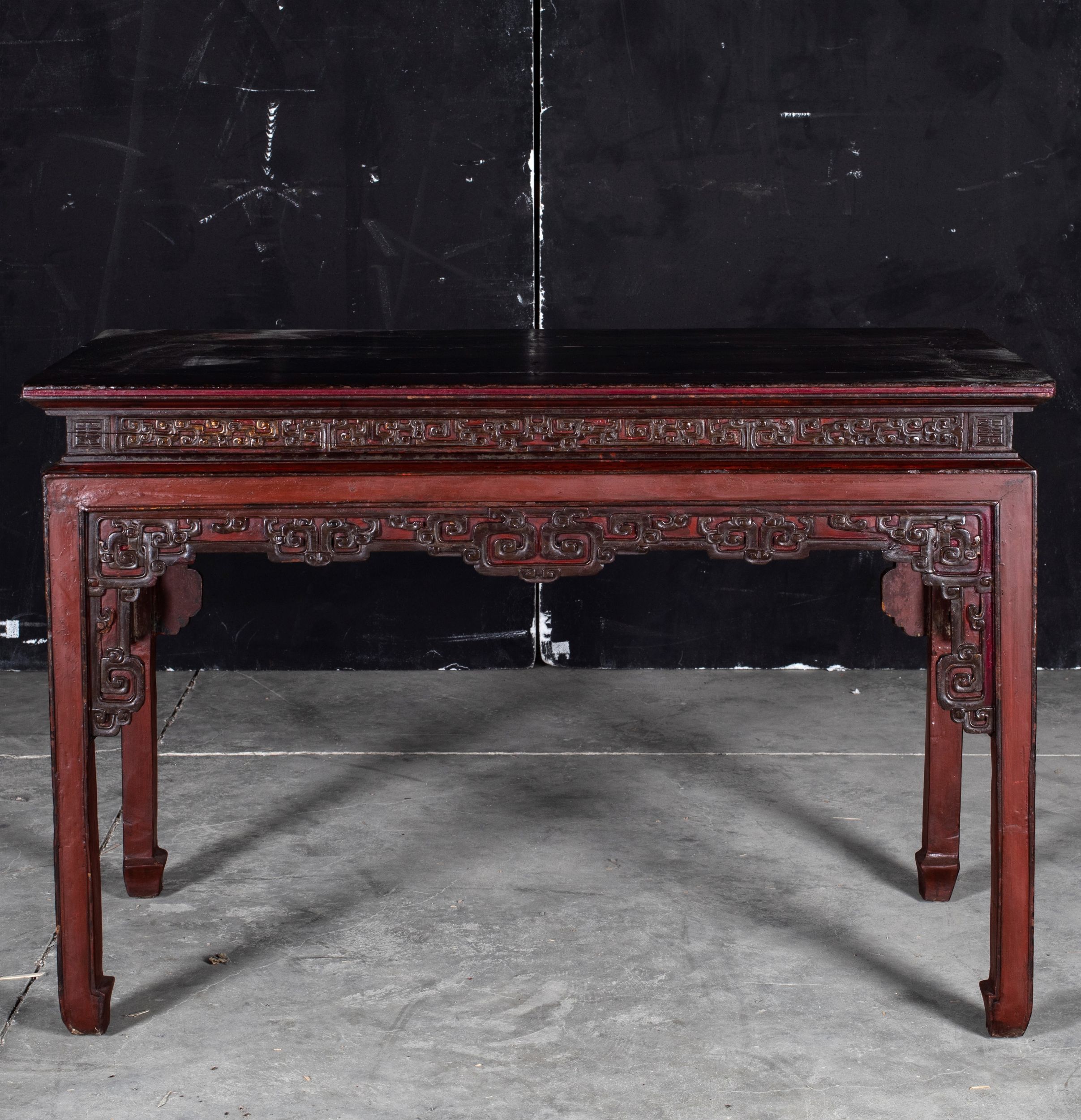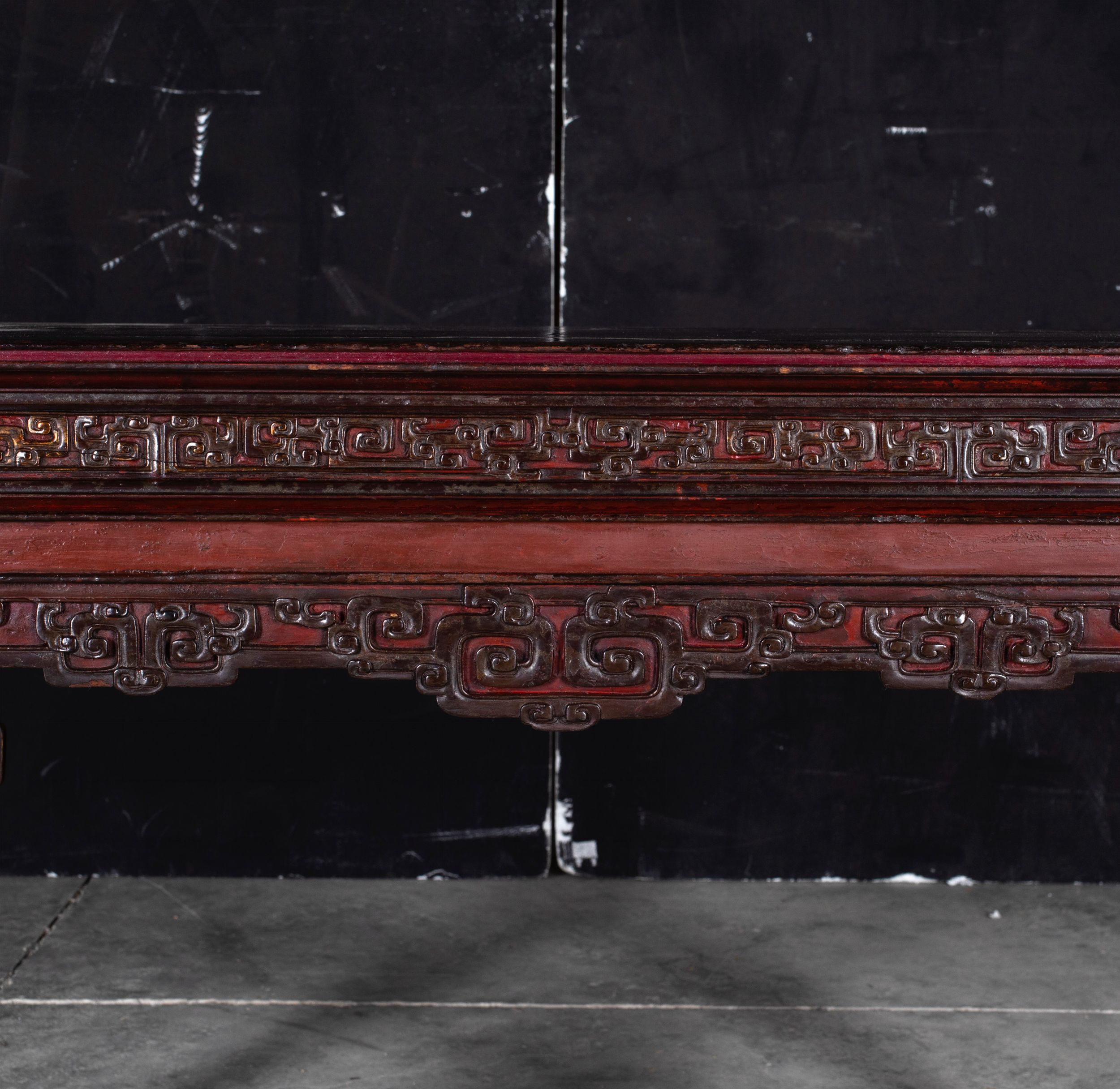 Consolle in legno con decori geometrici, Cina, XX secolo