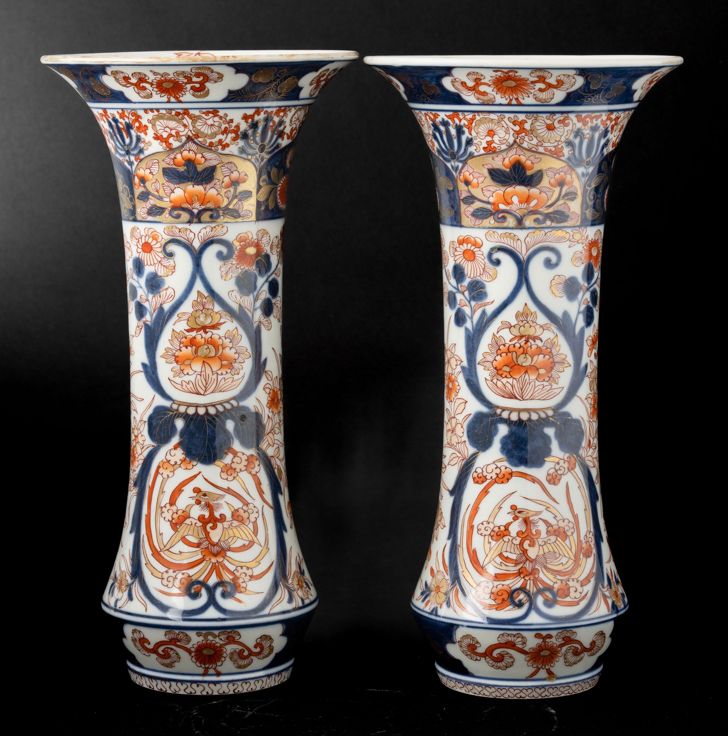 Coppia di vasi a tromba in porcellana Arita con decori floreali, Giappone, periodo [..]