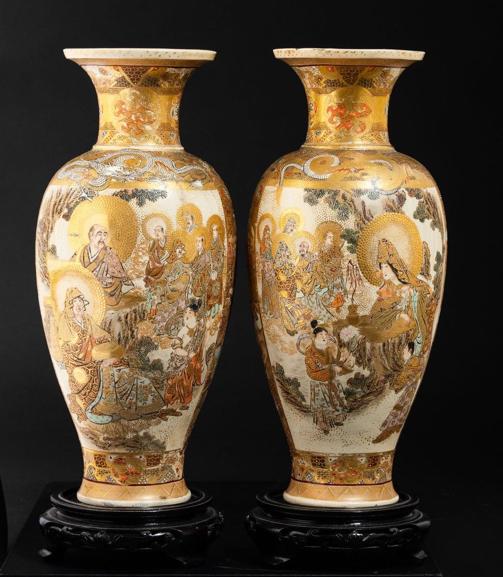 Coppia di vasi in porcellana Satsuma con figure di divinità, Giappone, periodo Meiji [..]