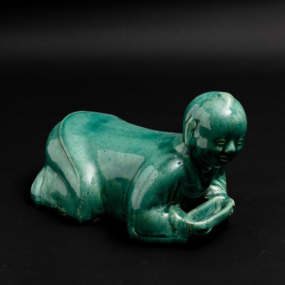 Cuscino in terracotta invetriata monocroma verde, Cina, Dinastia Qing, XIX secol [..]