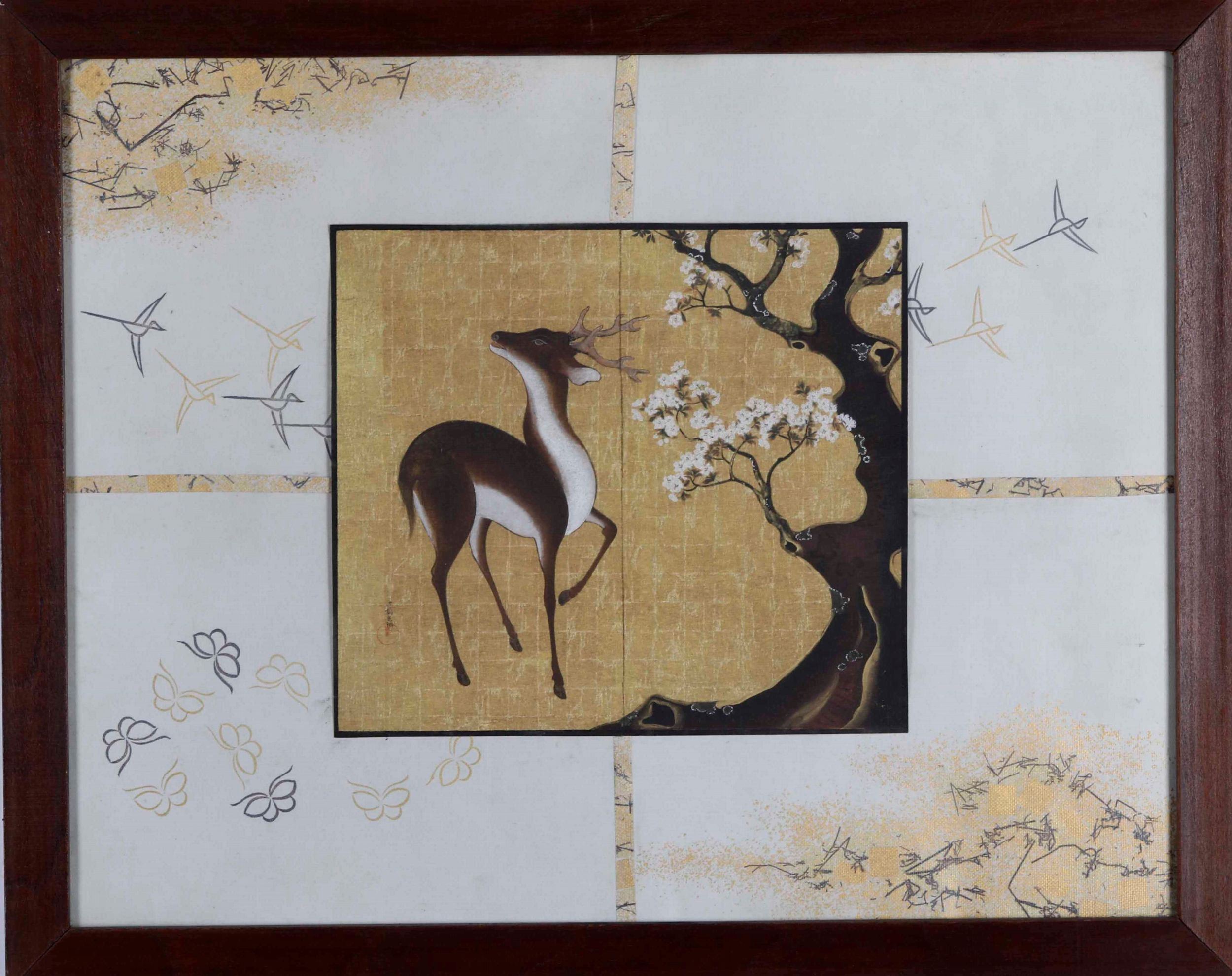 Dipinto su carta raffigurante cerbiatto e ciliegio in fiore, Giappone, periodo Meiji [..]