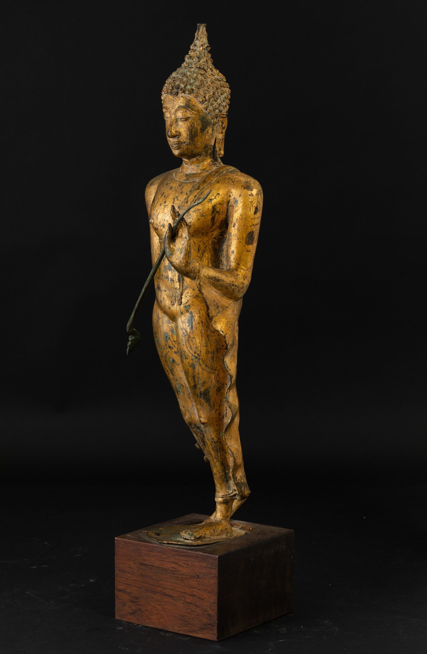 Figura di Buddha stante in bronzo dorato, Thailandia, Ayutthaya, XVII secolo