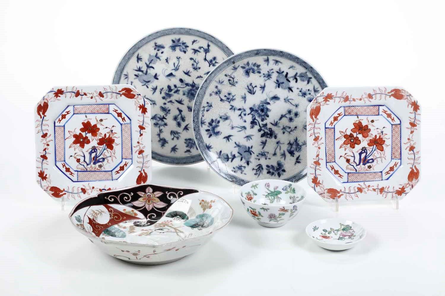 Lotto composto da tre ciotole e quattro piatti in porcellana di misure e forme diverse. [..]