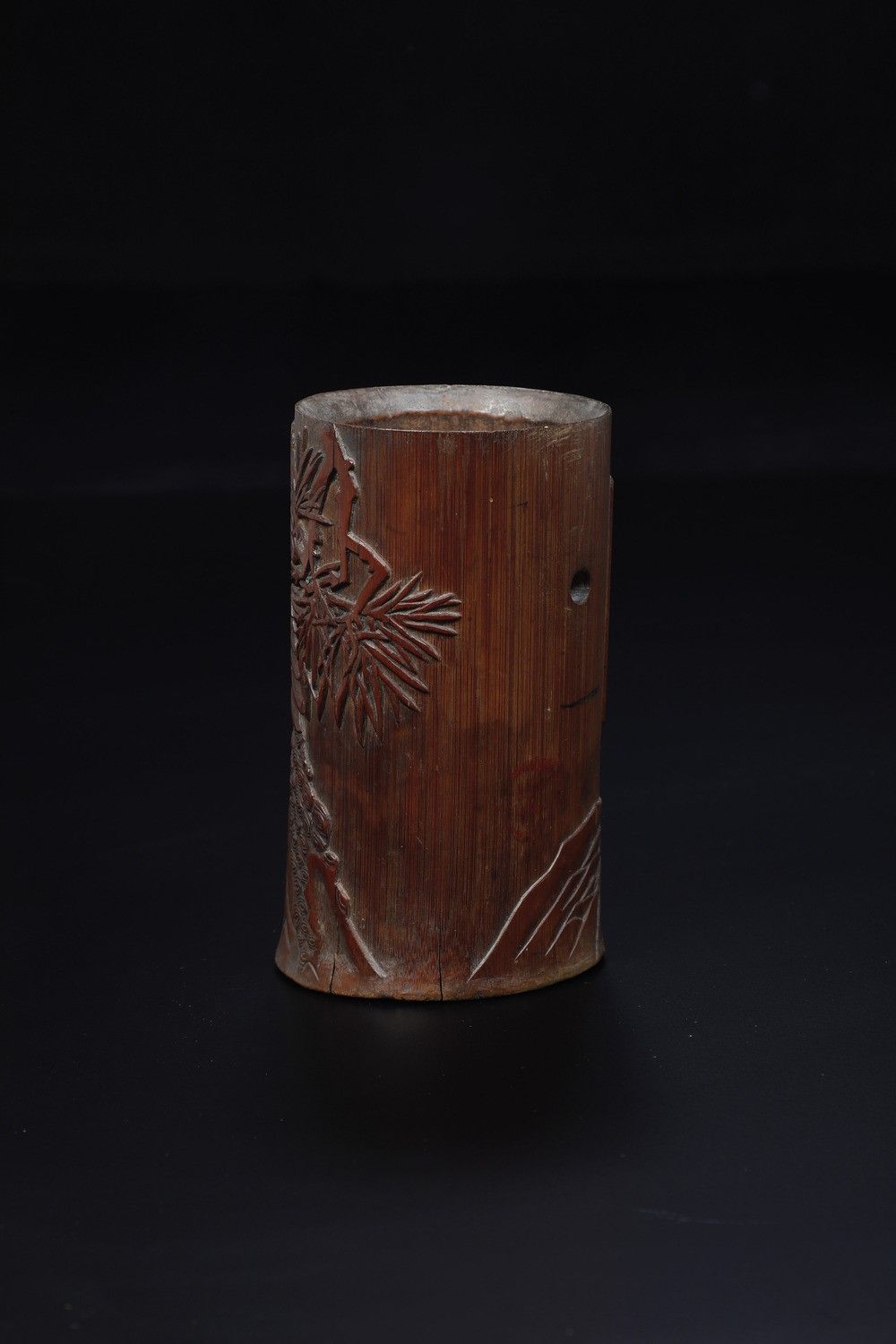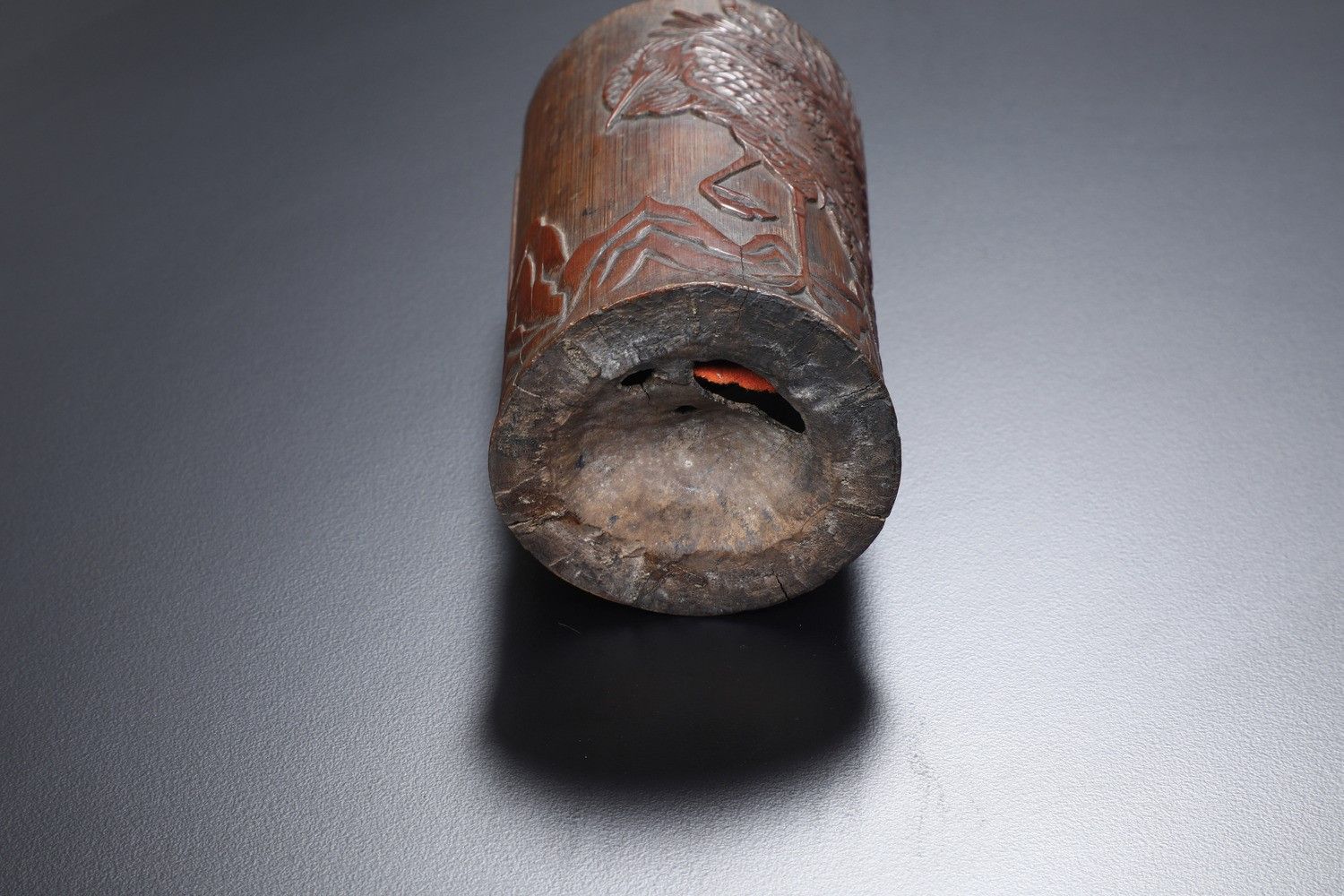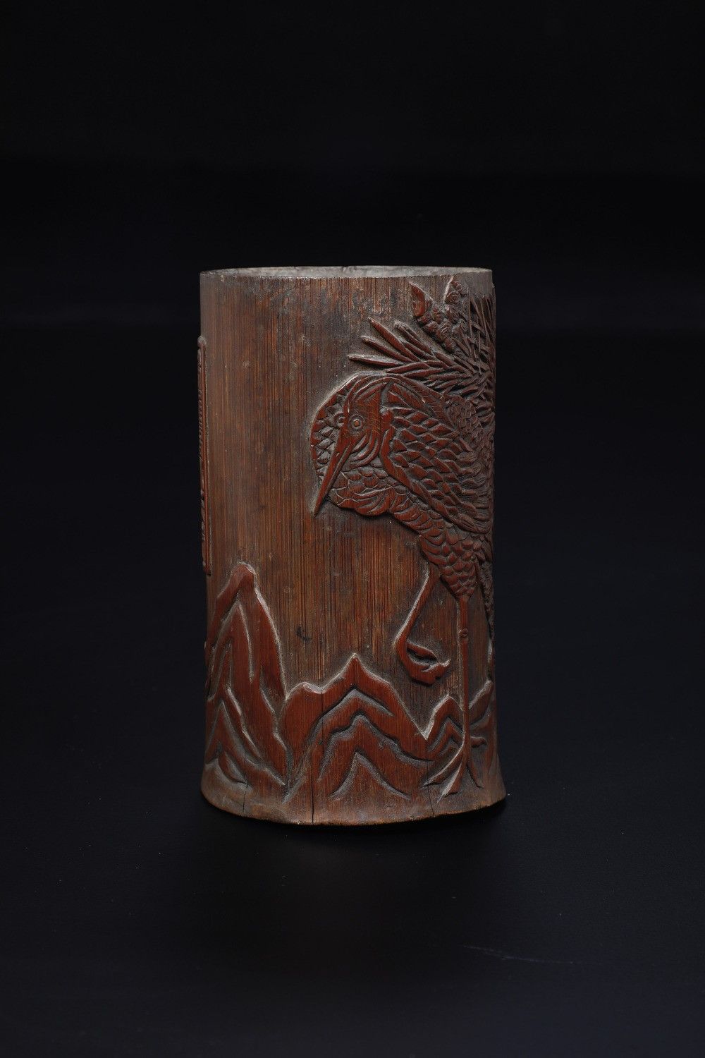 Portapennelli in legno di bambù a decoro naturalistico con airone, Cina, Dinastia [..]