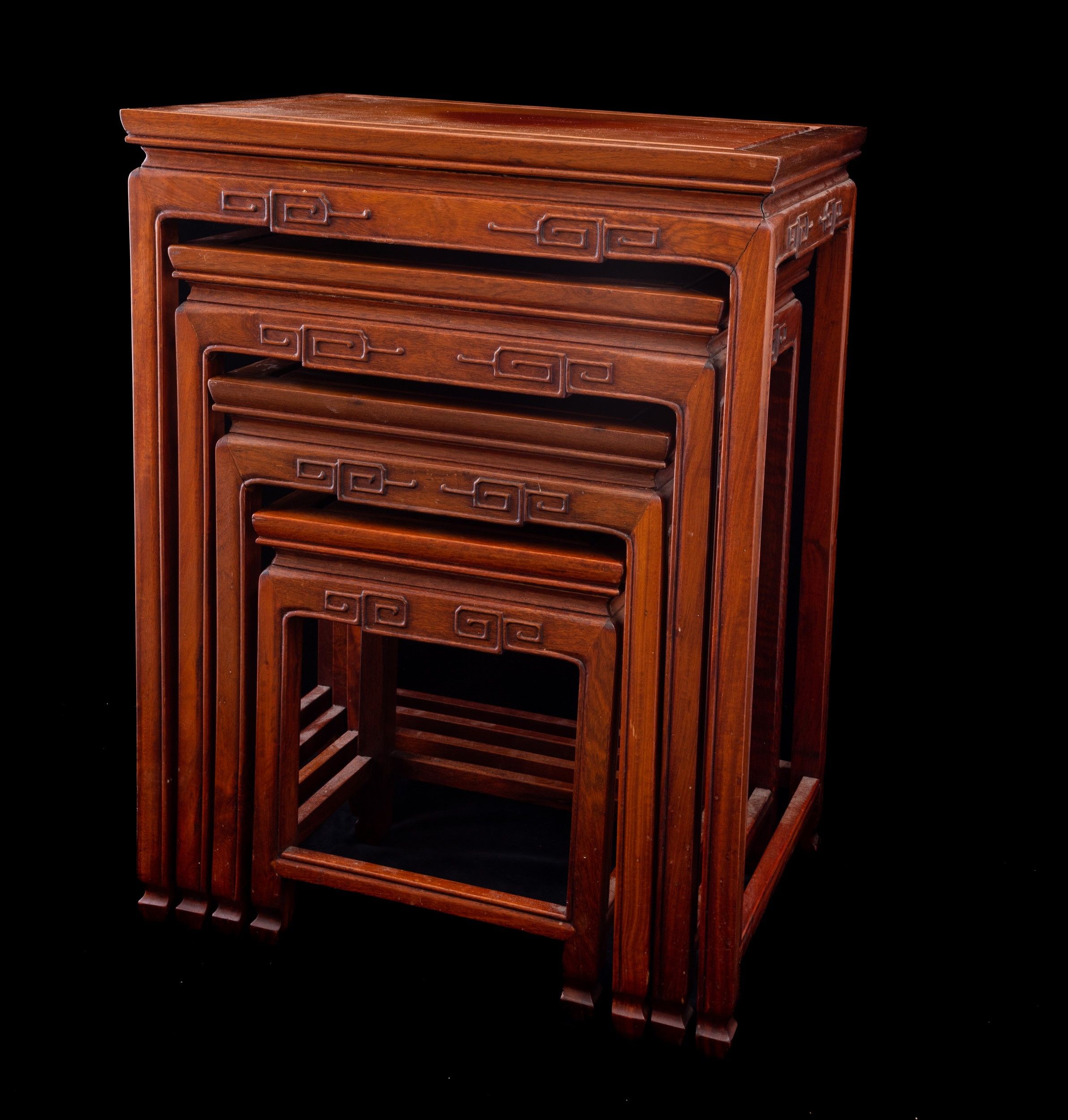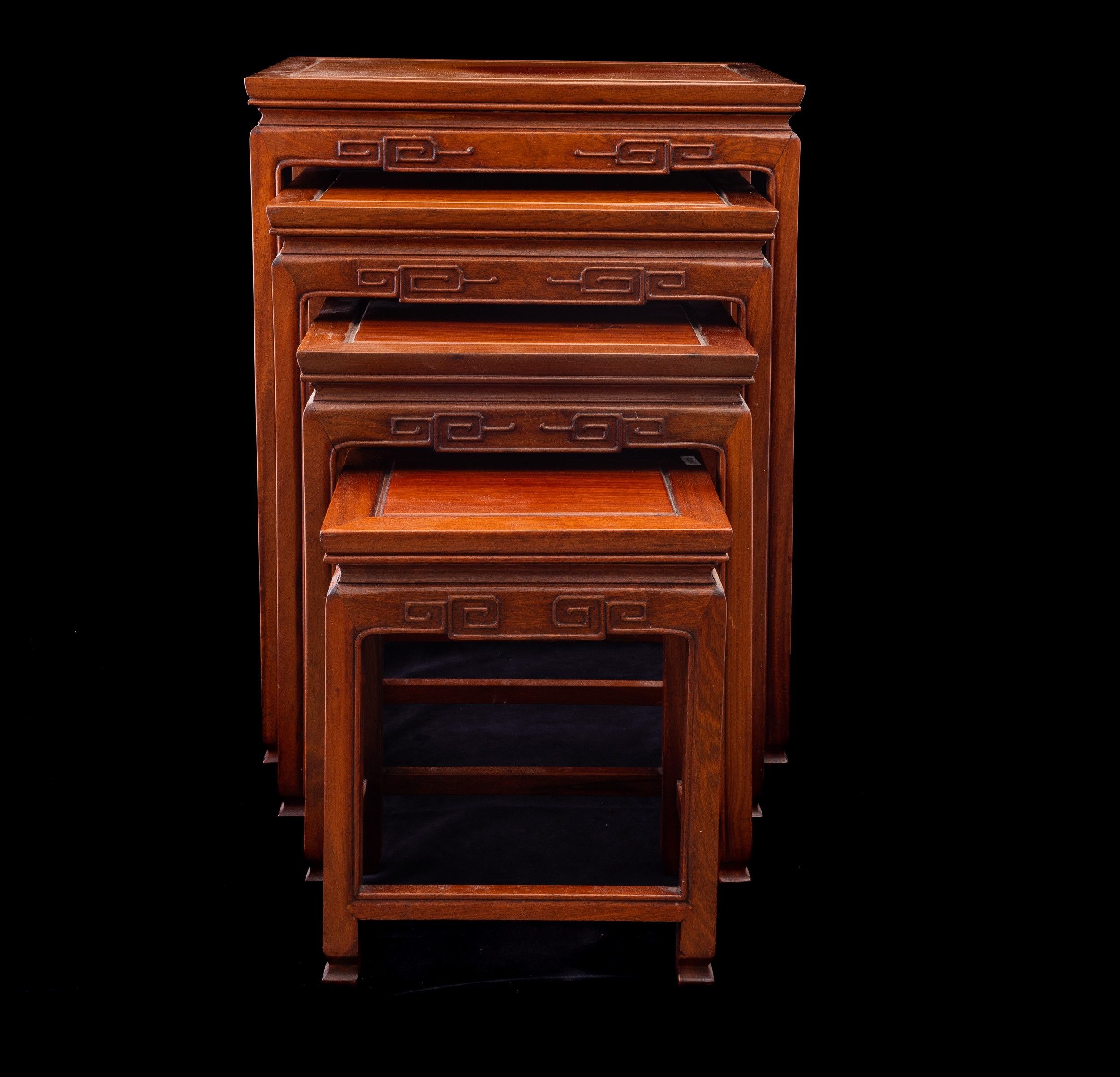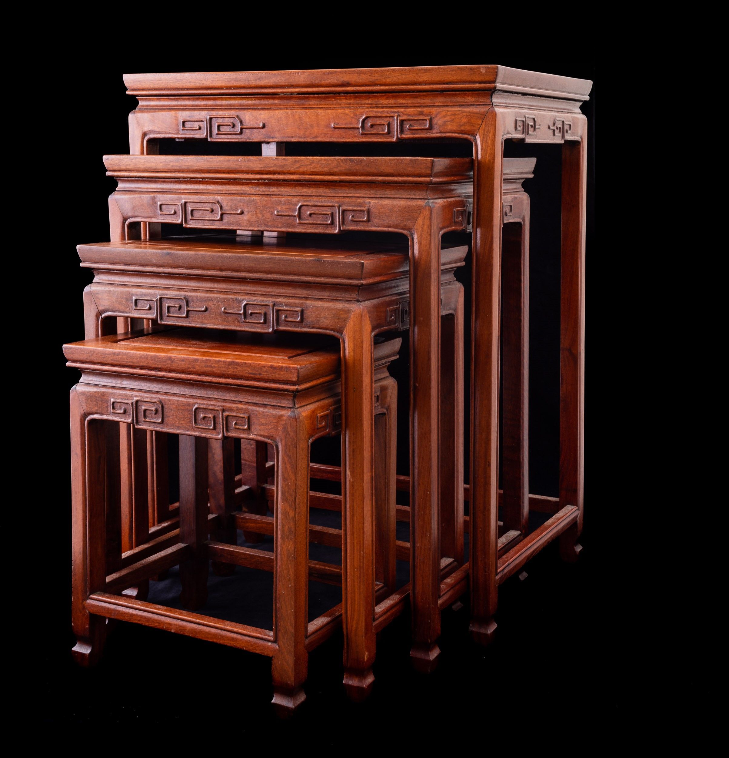 Quattro tavolini a nido in legno di Hongmu, Cina, Dinastia Qing, XIX secolo