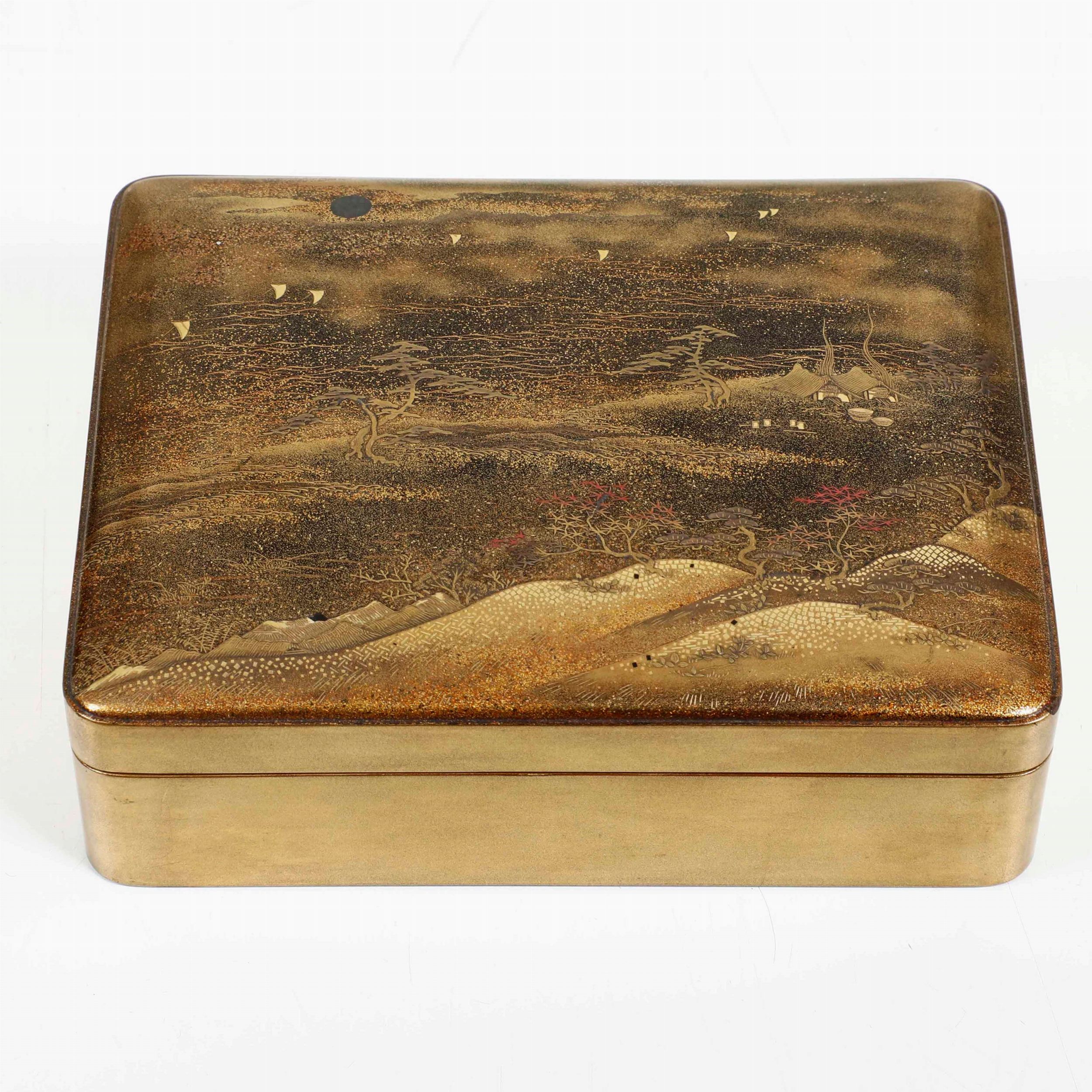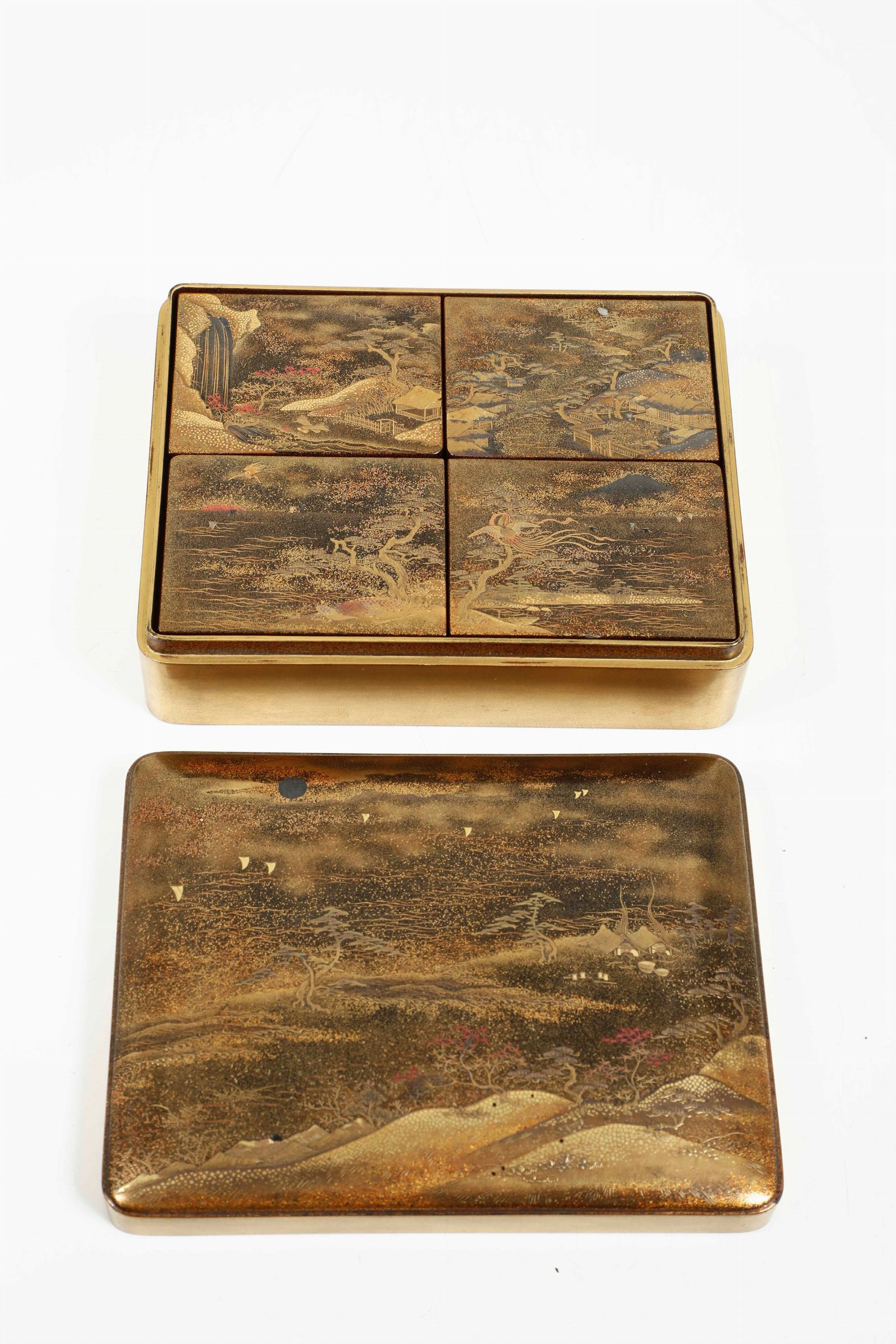 Scatola con coperchio in lacca raffigurante paesaggio, Cina, Dinastia Qing, XIX [..]