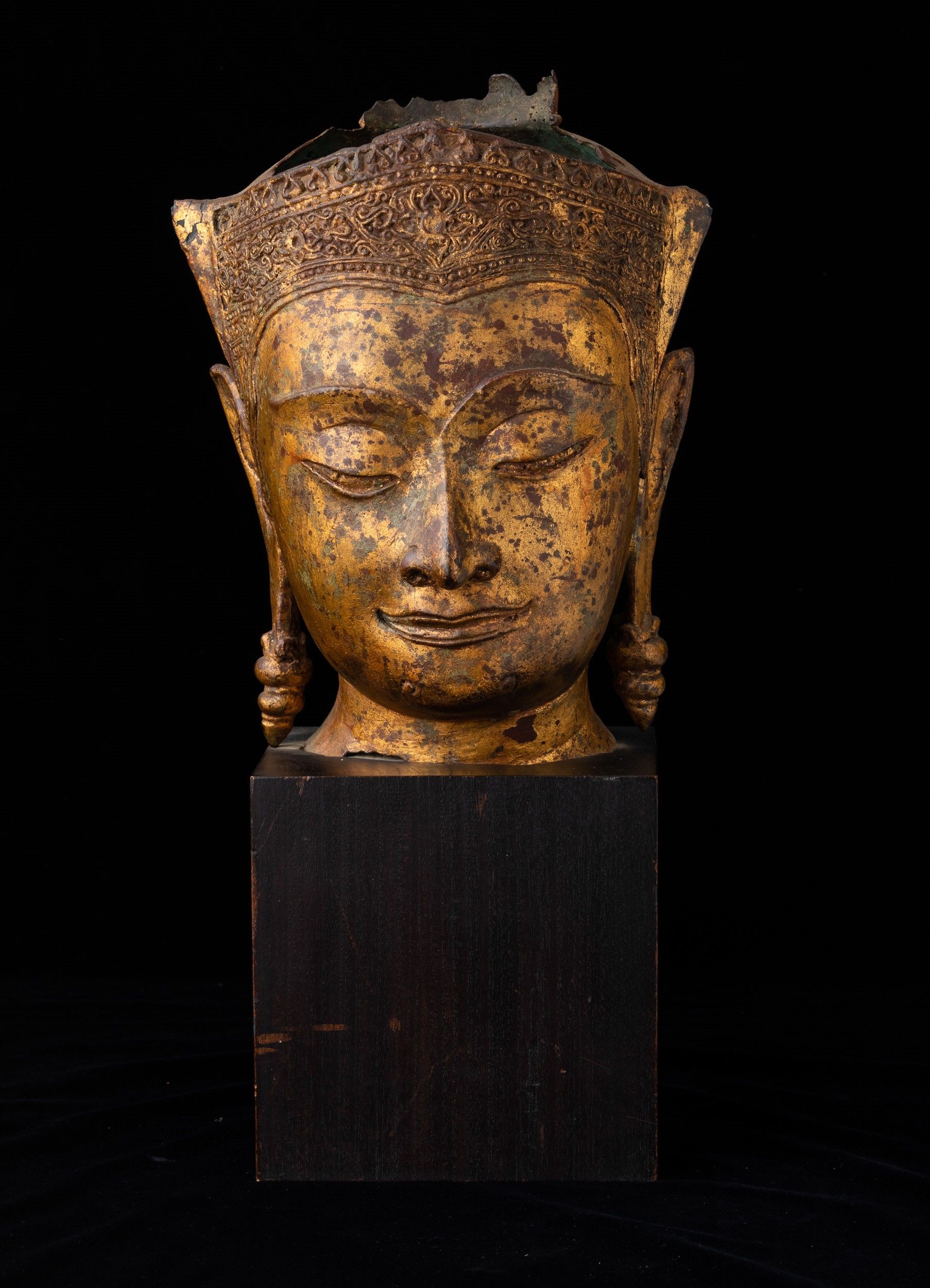 Testa Buddha in bronzo con tracce di doratura, Thailandia, XIX secolo