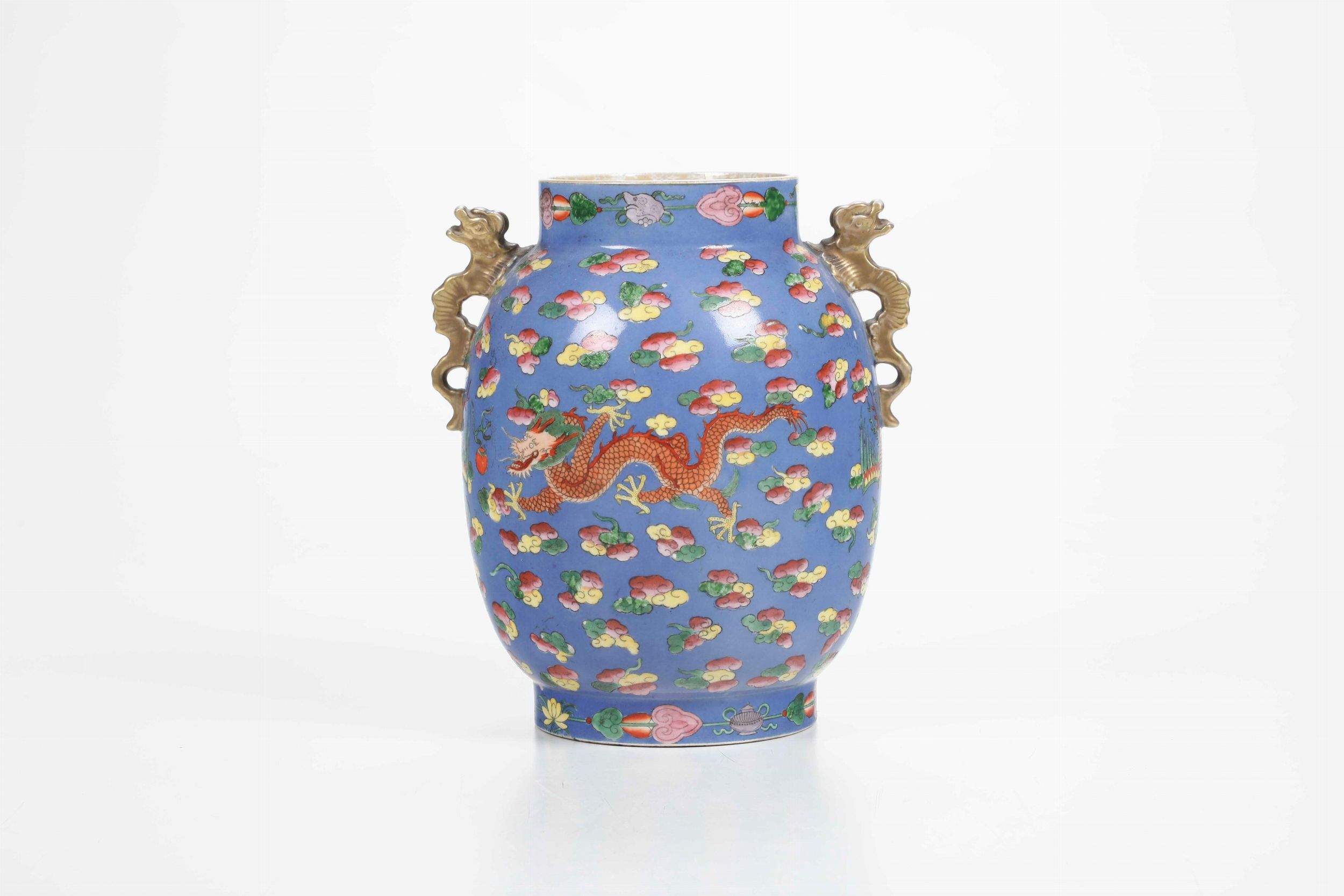 Vaso in porcellana con anse sagomate e figure di draghi tra le nuvole, Cina, Dinastia [..]