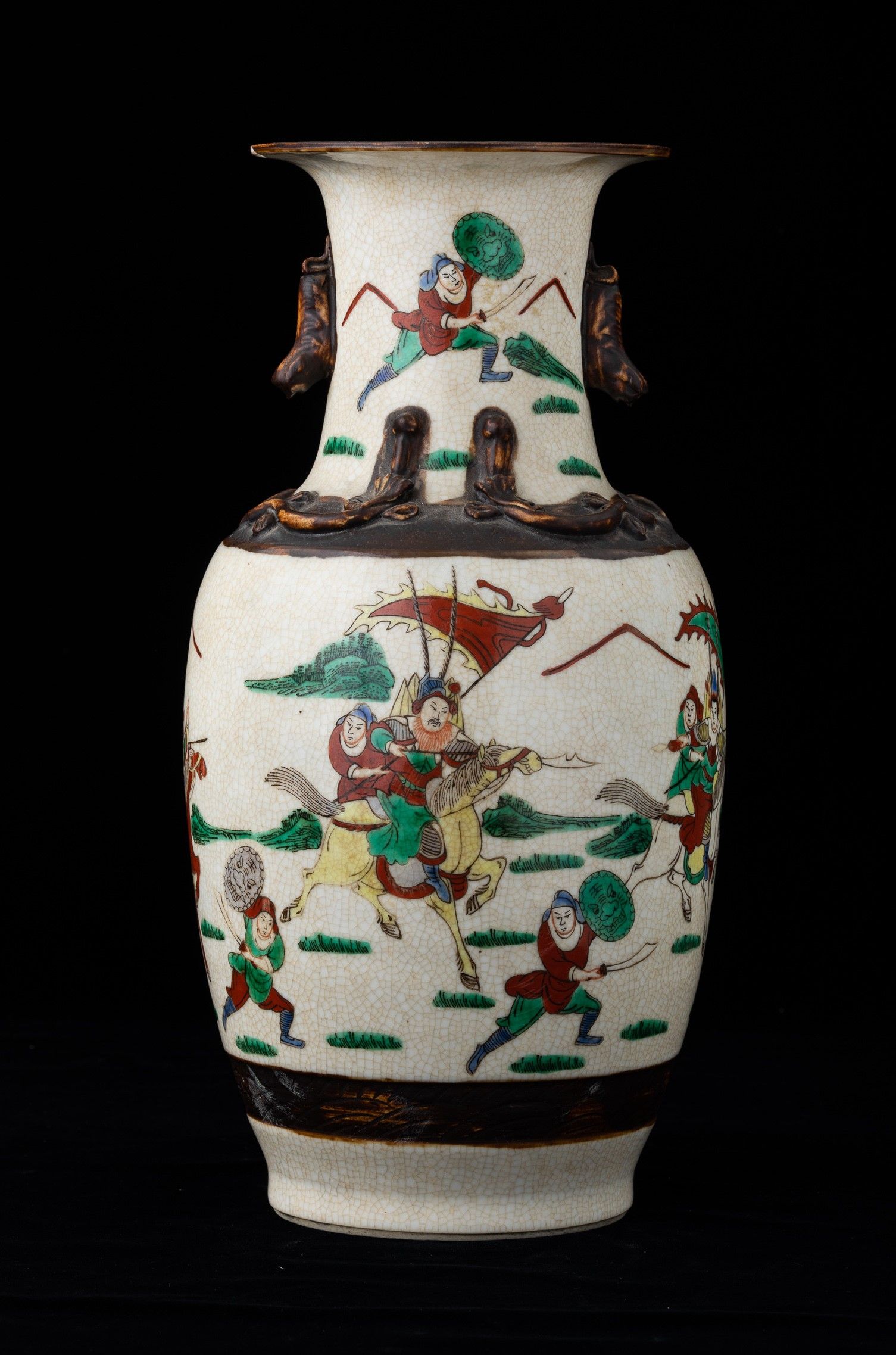 Vaso in porcellana con guerrieri e figure di draghetti a rilievo, Cina, Dinastia [..]