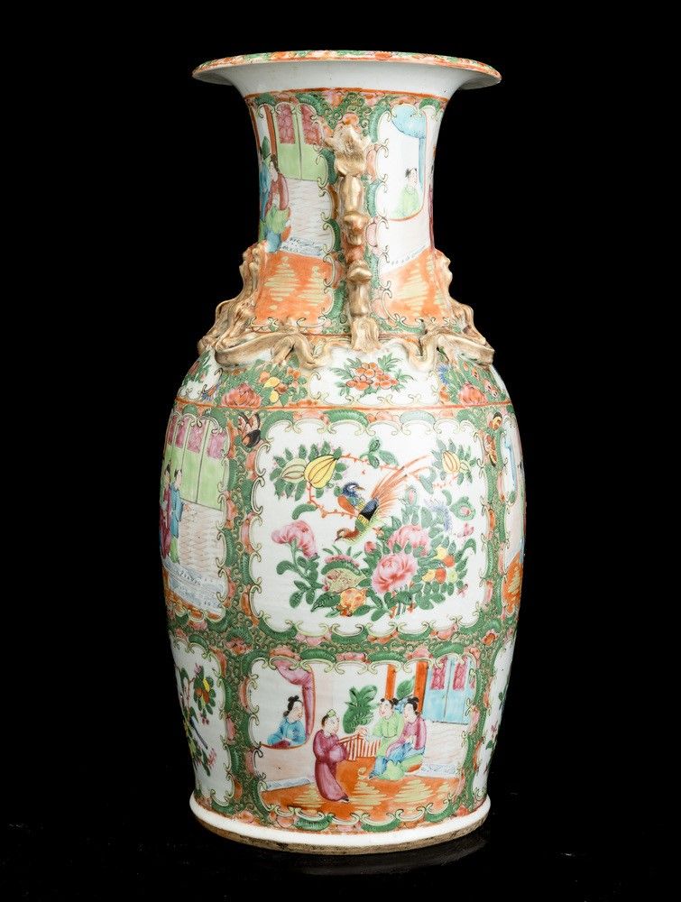 Vaso in porcellana Famiglia Rosa con scene di vita comune entro riserve, decori [..]