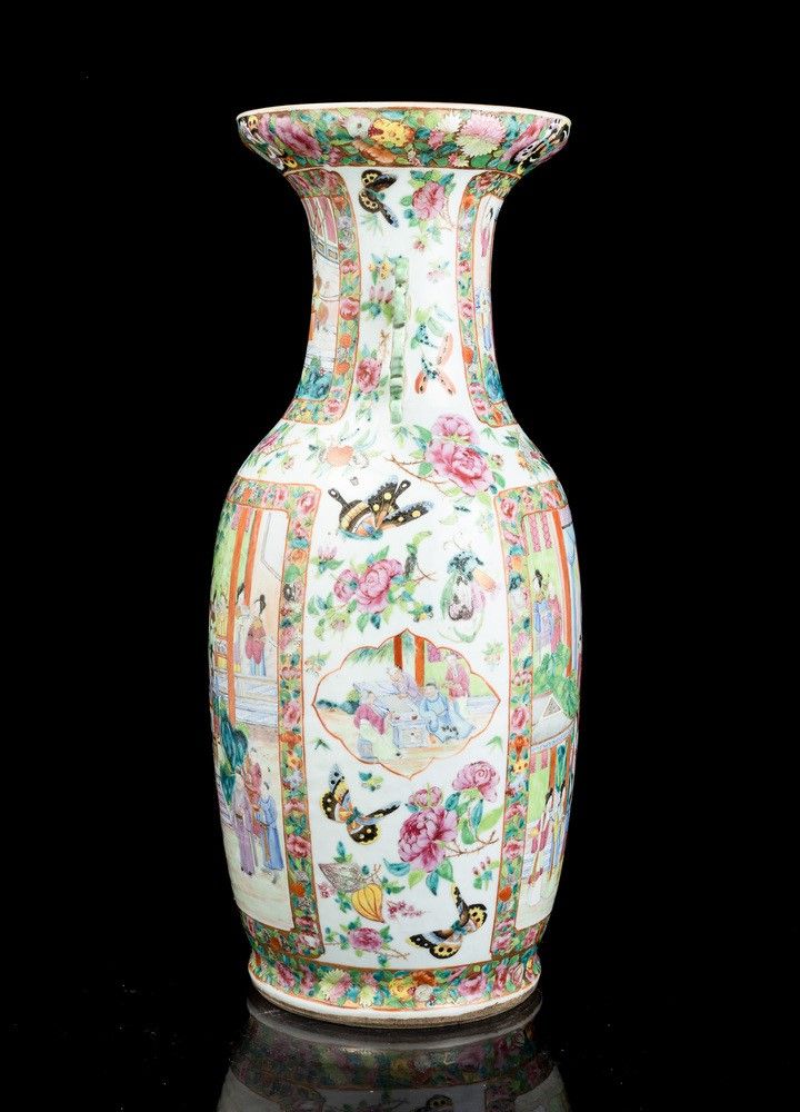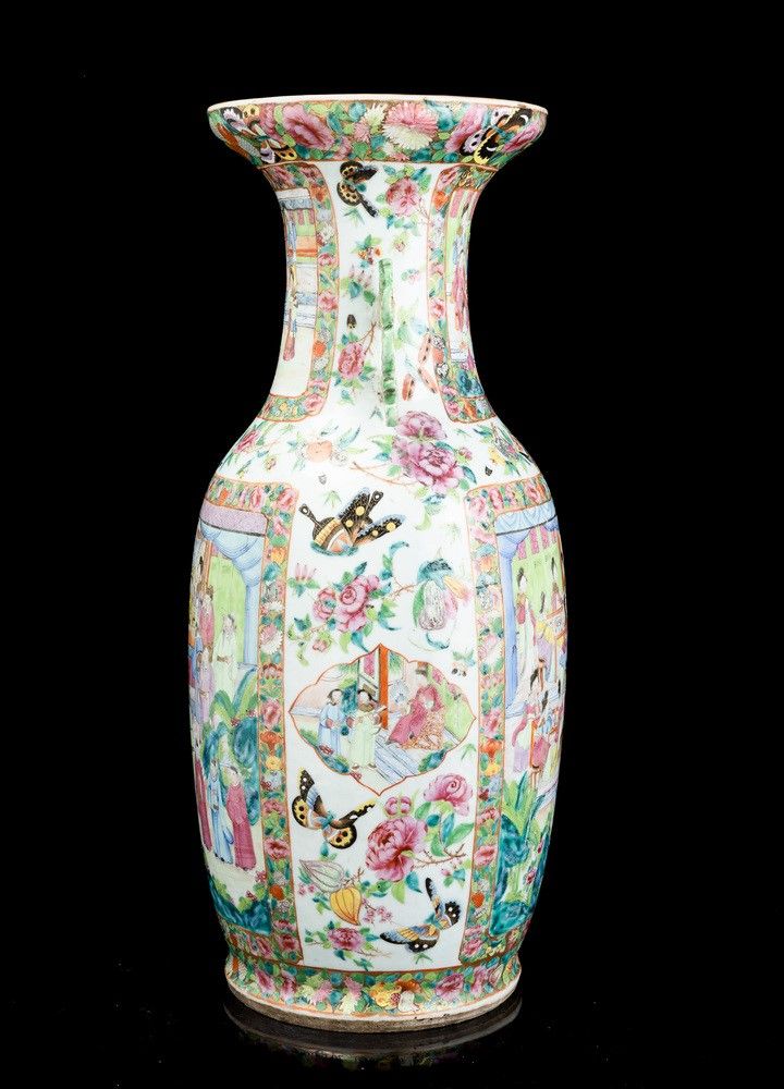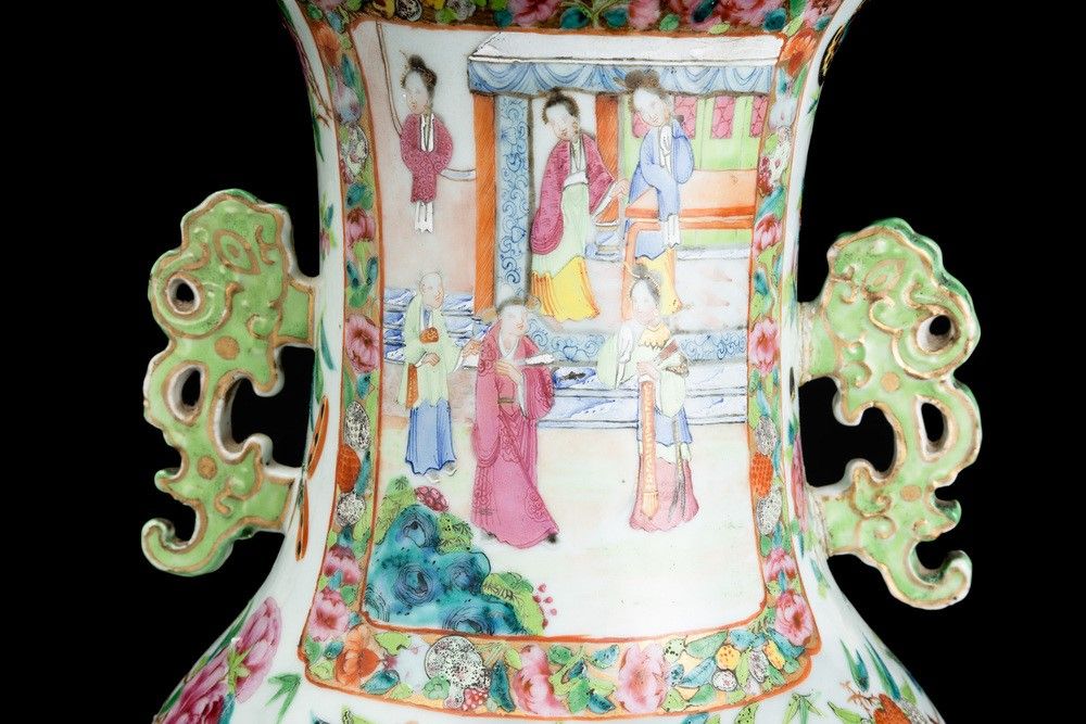 Vaso in porcellana Famiglia Rosa raffigurante scene di vita comune entro riserve, [..]