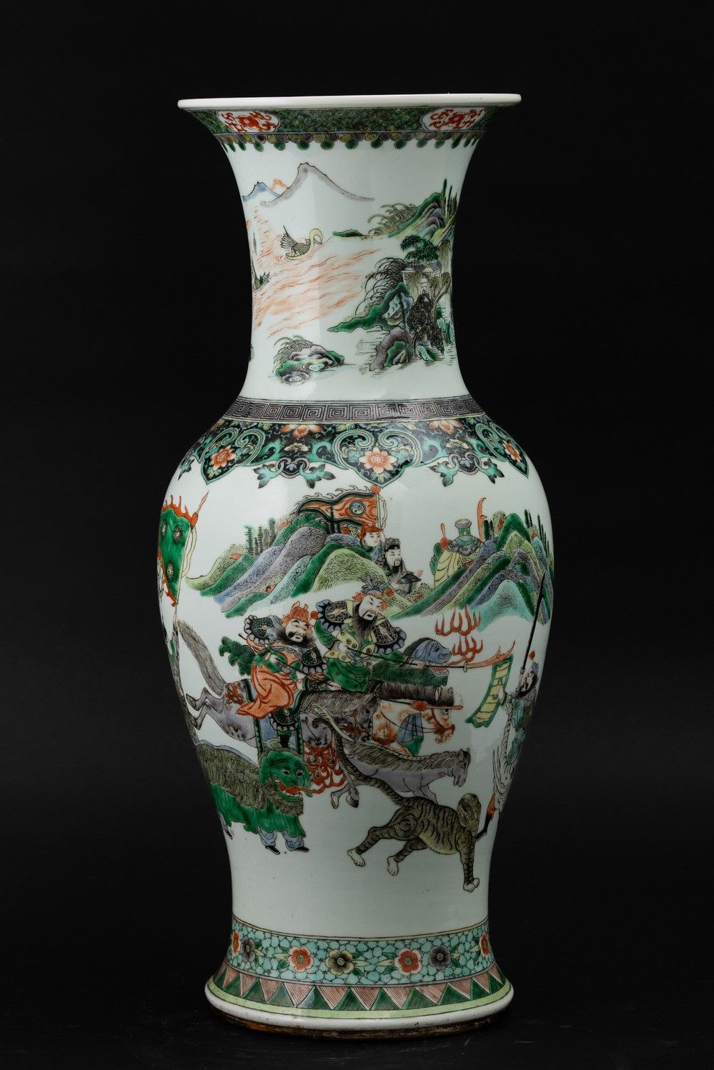Vaso in porcellana Famiglia Verde raffigurante guerrieri, Cina, Dinastia Qing, XIX [..]