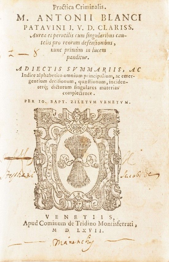 Antonii Blanci Patavini Pratica criminalis...Venezia, Cominum de Tridino Montisferrati, [..]